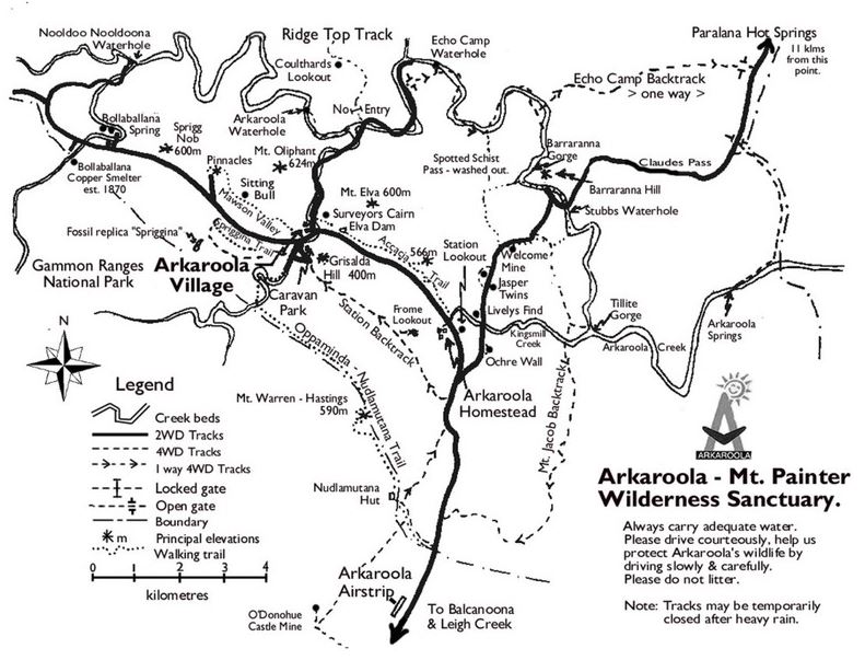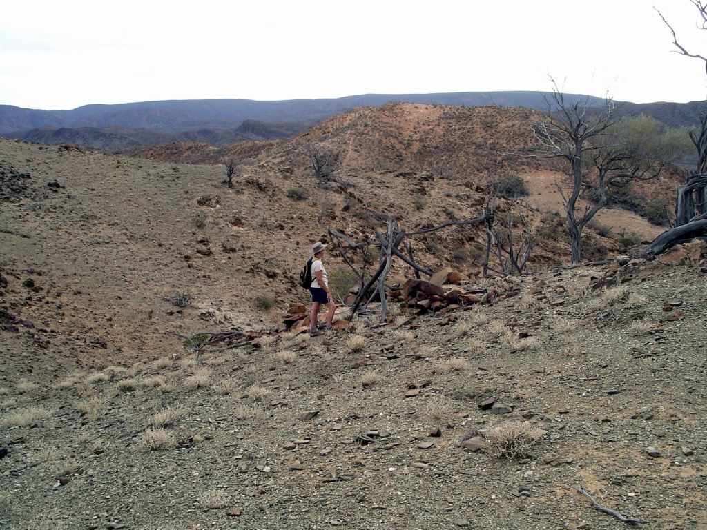 Left Truck at Grindells Hut and set out to do a circuit walk – along Balcanoona Creek to the junction with Worturpa Creek (where we reached from the other direction the other afternoon). Then would follow that creek up past Weetootla Springs, to McTaggarts Track. This would be easy, but scenic walking, along some of the road we had driven in on, and take us back to the Hut and Truck.