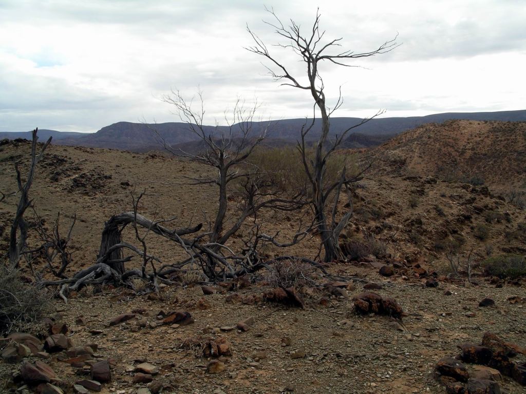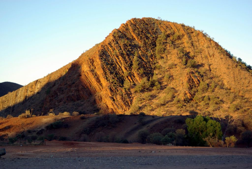 Then back out McTaggarts Track to the Arkaroola road. It was getting dark by the time we turned back onto the main road. Made a quick stop to gather some more firewood, heaving it up onto the roof rack, where the mesh base of this would stop it falling through – the best sort of roof rack to have!