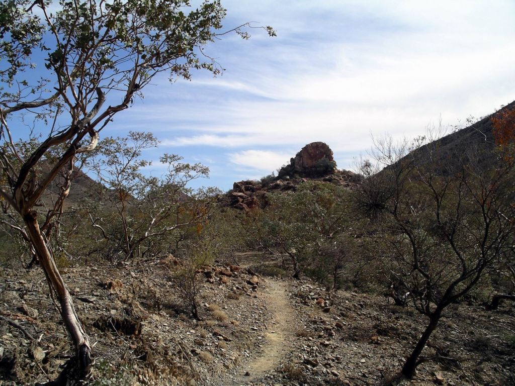 That entire loop is one way only – which should in itself be a give-away that it would be no picnic! It had some “interesting” 4WD sections. I definitely do not like places where you climb a steep hill towards what is obviously a vertical drop at the top – with no indication whether the track, at the top, turns right, left, or goes straight on! Until you are right on it! The long, block like nose of Truck did not help either. M was following us, in her Troopy, and did fine with the driving – but having us in front was a bit of a guide. To date, her 4WD experience had been on much more flat country, like Arnhem Land, not on roller coaster tracks. I reckoned we would fix that while we were here!