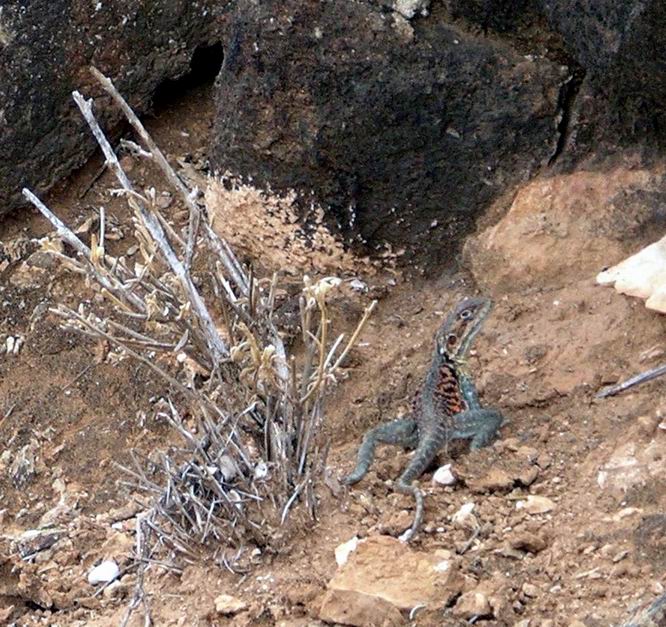 We packed a lot into today, including a couple of notable wildlife encounters: a yellow footed rock wallaby at Weetootla Springs (no hairy nose!) and a most unusual reptile with patches of bright orange and black patterning, on the very dry hillside near the Monarch Mine.