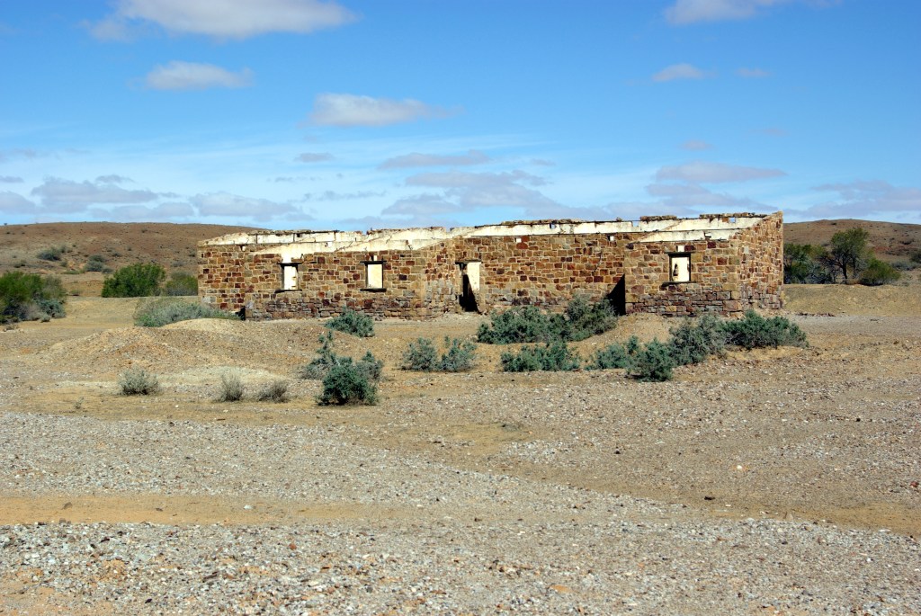 The rails of the siding were intact, as was the fettlers’ cottage. Here, despite the surrounding aridity, a pair of swallows had made their home under the veranda.