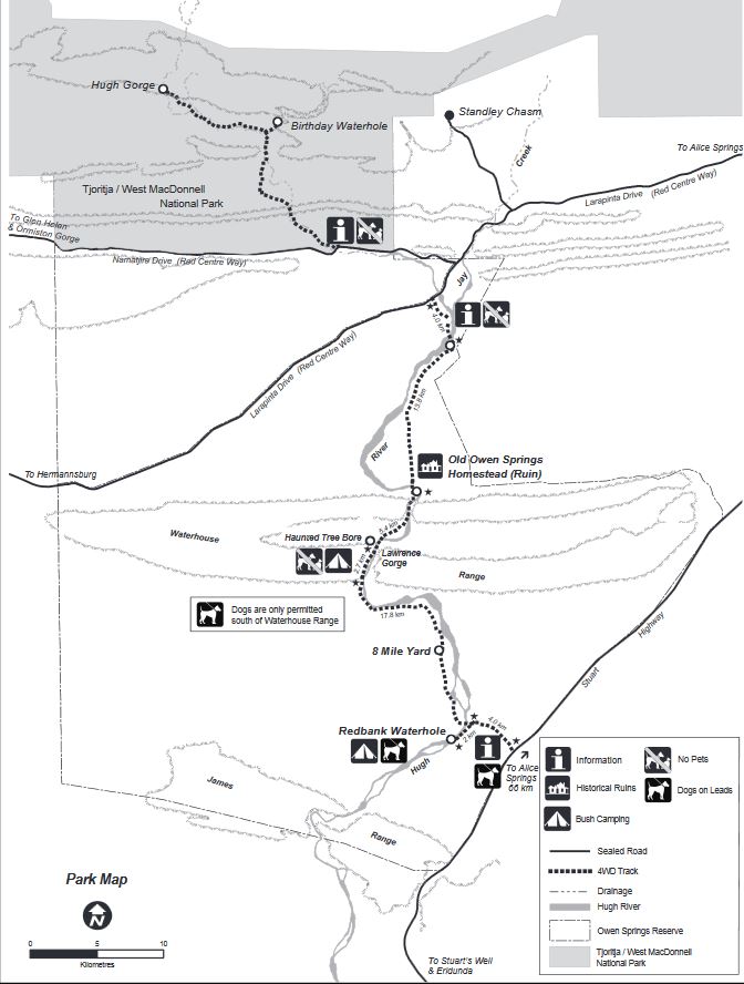 This Reserve, formerly Owen Springs cattle station, had only been open to the public since 2003, so was not yet widely known about. It straddled Namatjira Drive, with the larger portion stretching from that to Larapinta Drive. Basically it encloses a section of the Hugh River – at this time of year really a series of waterholes.