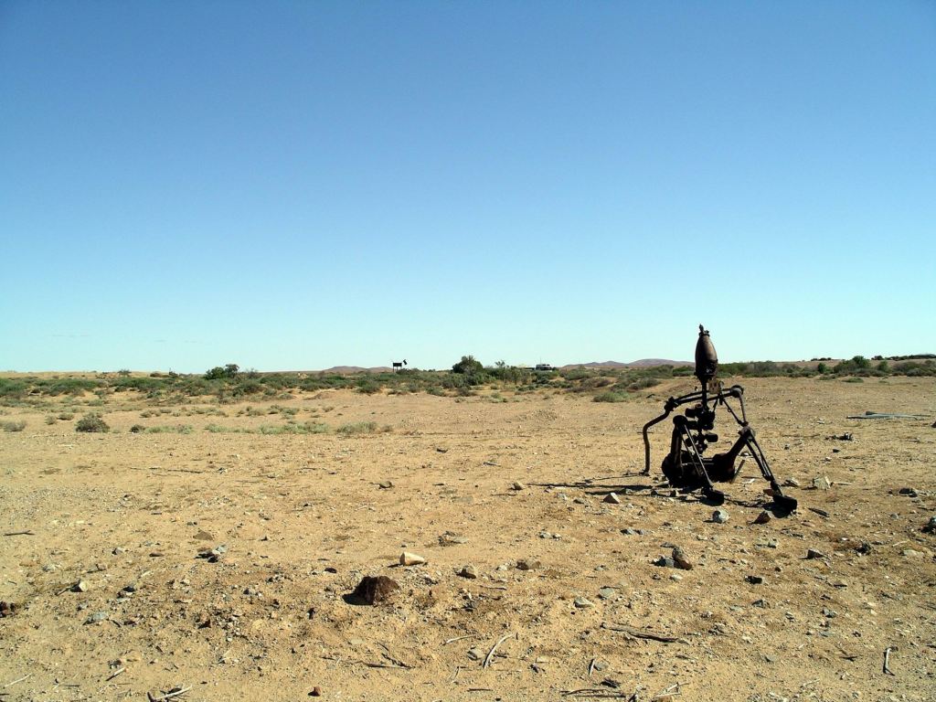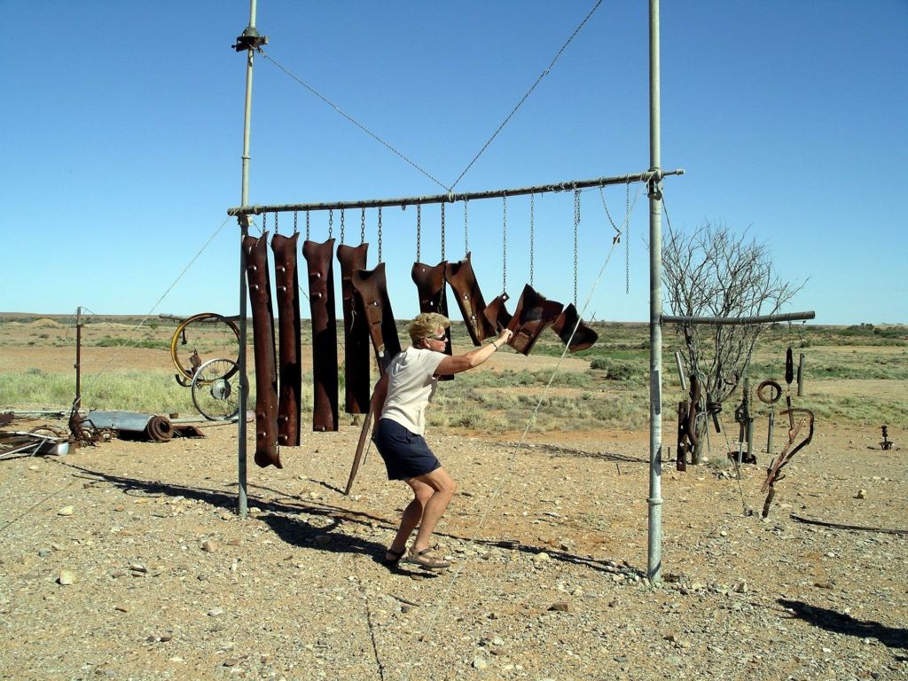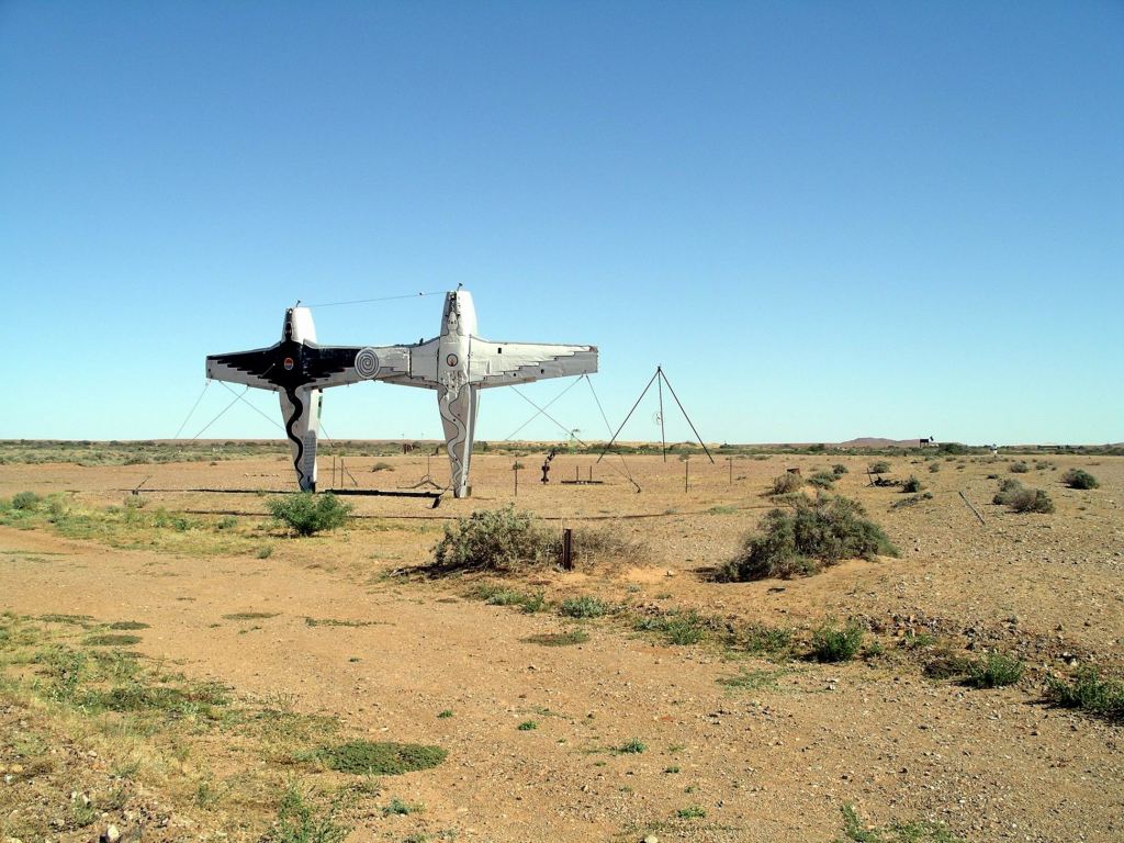 Another 16kms on brought us to one of the most unusual – and most recent – landmarks along the Old Ghan Track: “Plane Henge”, or the Mutonia Sculpture Park.