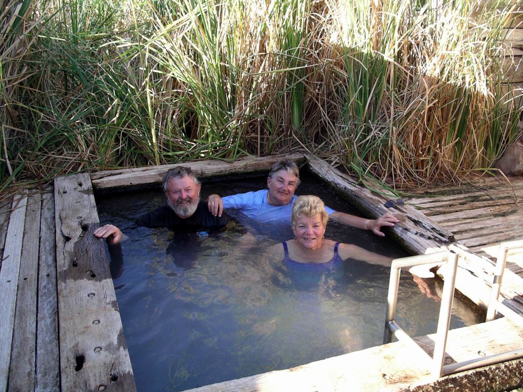 After doing a minimal one night only set up, the three of us spent about half an hour in the warm artesian water of the pool. The water flow felt very strong and seemed very therapeutic. It felt damned cold when we got out, though!