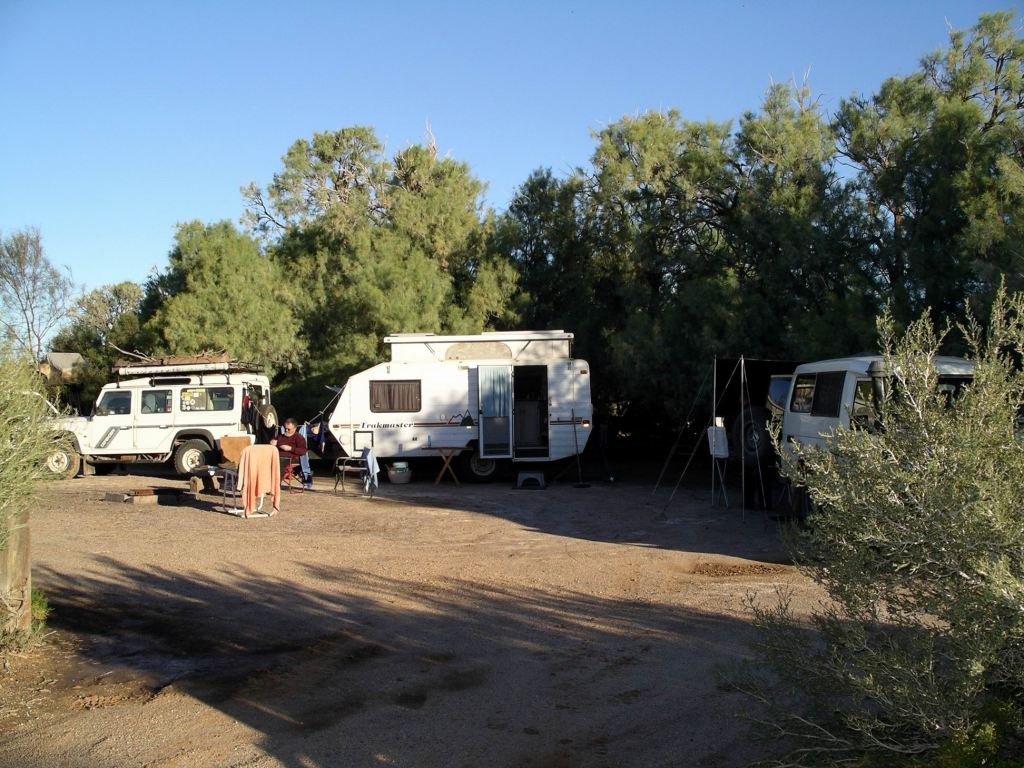Coward Springs was another of the former sidings. It has been saved from the decaying fate of the other sidings along the rail route. In 1991 it was privately acquired. Then, there was an extensive wetland area here, arising from the uncontrolled outflow of a broken bore, and the ruins of only two of the original buildings – the Station Master’s house and the engine drivers’ cottage. The bore was rectified and capped, leaving only a regulated outflow to sustain a smaller wetland. The two buildings were restored and heritage listed. The campground was set up.