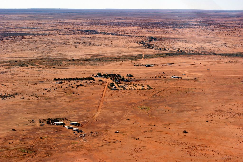 William Creek from the air. Caravan Park central, hotel in trees just beyond it