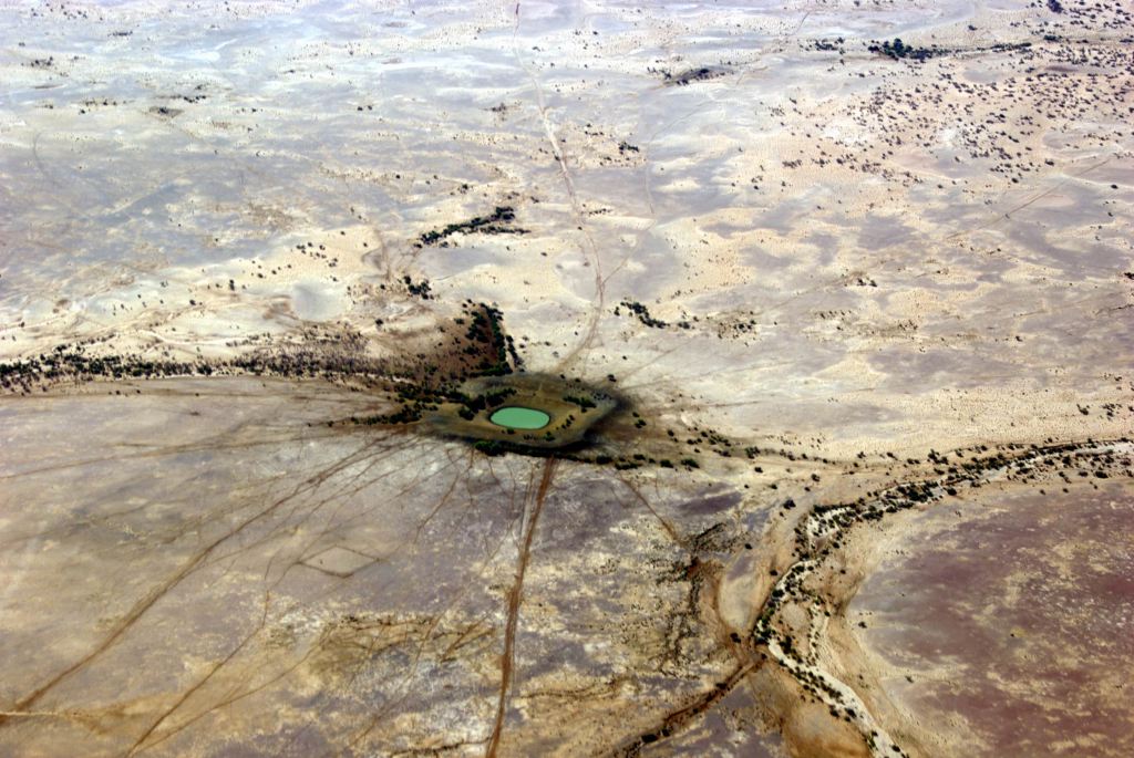 Water filling into Lake EyreA cattle watering point, with cattle tracksThe Warburton Groove, bringing water to Lake EyreThe Painted Hills and creek channel – reminiscent of aboriginal art depiction.