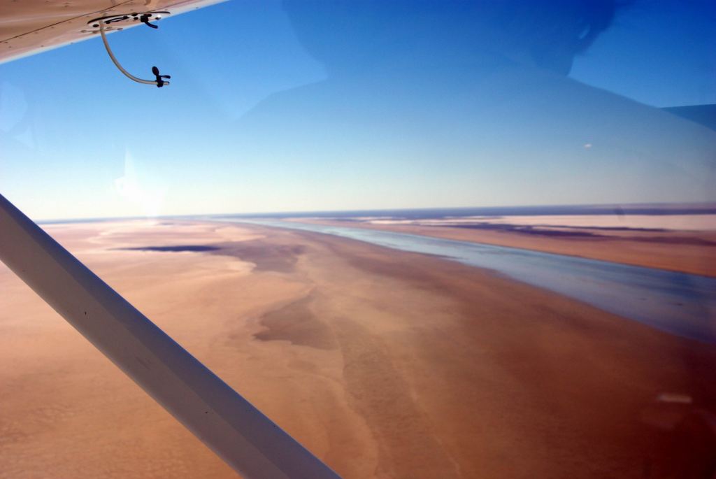 Today’s stage was short, because we wanted to stay at William Creek, so some of us could take a sight seeing flight over Lake Eyre, where we knew water was entering the north-east lake from the Warburton Groove; the flight would also go over the Painted Hills, an area not accessible to travellers in any other way.