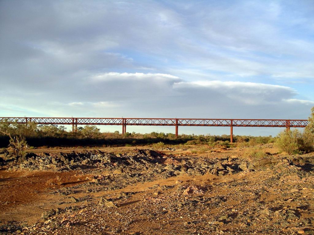 With the coming of diesel powered railway engines, the days of the Old Ghan route were numbered. A road, of sorts, had been constructed from Port Augusta to Darwin during WW2, following higher ground well to the west of the train route. That was to become the Stuart Highway. In 1980, a new rail line was opened that roughly paralleled the highway, and avoided the flood prone sections of the old railway. The Old Ghan line and its associated infrastructure, fell into disrepair; the townships that had serviced the railway, shrank to either ghost towns or small, mostly indigenous, settlements.