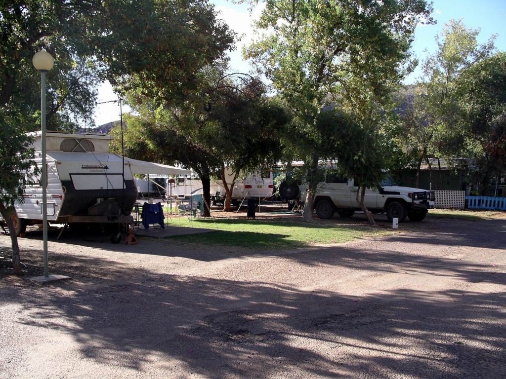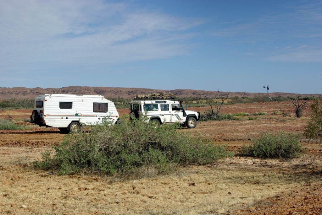 We booked into the very new Dingo’s Caravan Park – $20 for our powered site. We thought this place would be removed from the rowdiness of the camping area right by the pub. It looked to have a lot of promise, with a lovely new amenities block. There were no formally marked out sites, only power poles to mark places, so as we were the only occupants of the place, we pulled in each side of one such pole.