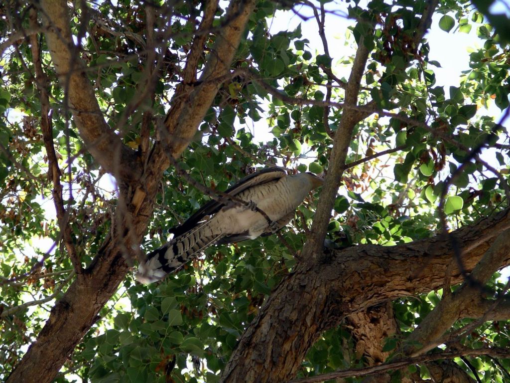 In the afternoon, there was an audience gathering by a tree near our van. There was a juvenile channel-bill cuckoo there, causing much interest, because it was way out of its supposed range and season and hence a novelty in Central Australia. Because it was a cuckoo, we wondered whether its unsuspecting surrogate parents migrated to this area, and it came with them? Normally, these birds are only present in northern Australia in the Wet Season – they are also locally called Storm Birds, for that reason. So this was one very lost bird!