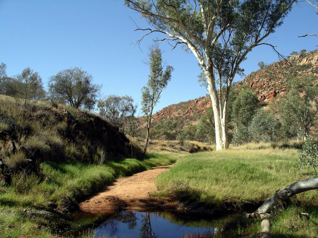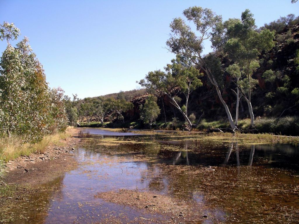 This was “quietly” typical Central Australia – meaning it wasn’t the dramatic country of much of the Western Mc Donnell Ranges. Great clumps of grasses grew at the sides of waterholes along the river, where pools remained from the last decent flows, which could have been years rather than months ago.