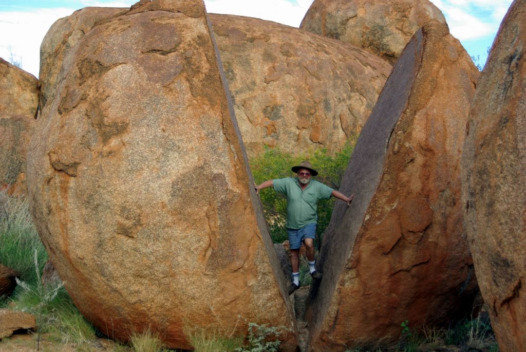 There was a smaller section of Marbles across the other side of the access road. It did not seem that quite so many of the visitors bothered to walk that far, but we did, and were rewarded by the sight of some interesting split rocks.
