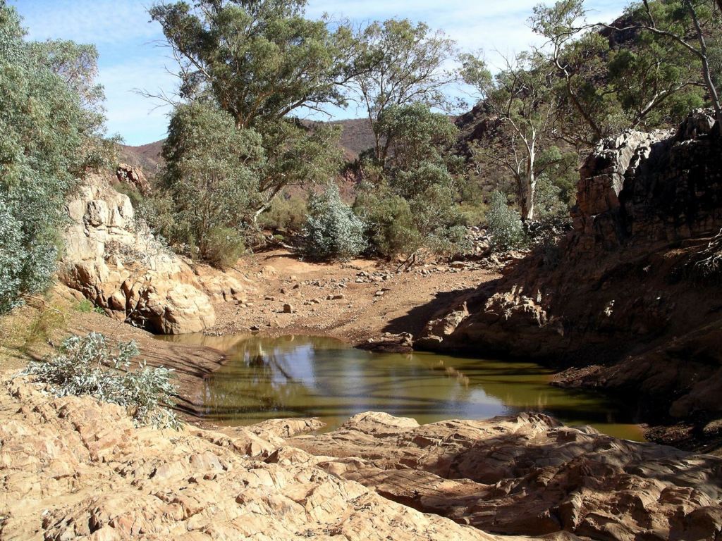 We checked out the campground, which was not far from the homestead. It was actually very pleasant, and would have been a great spot to stay for a couple of nights. There was a wetland area around a bore channel and Frome Creek, and plentiful bird life. There were a couple of decent toilets, a concrete table and seats, bush and informal park areas. One could swim in the waterhole – but the water was not drinkable. Charge was $2 a night! The only drawback was lots of flies!