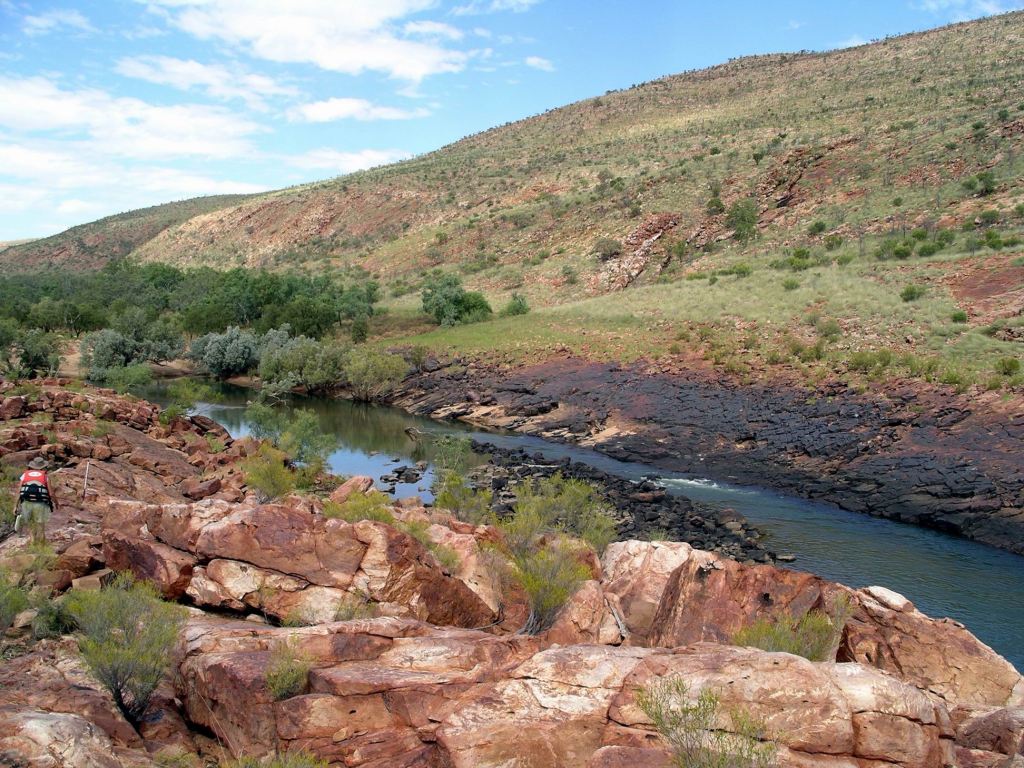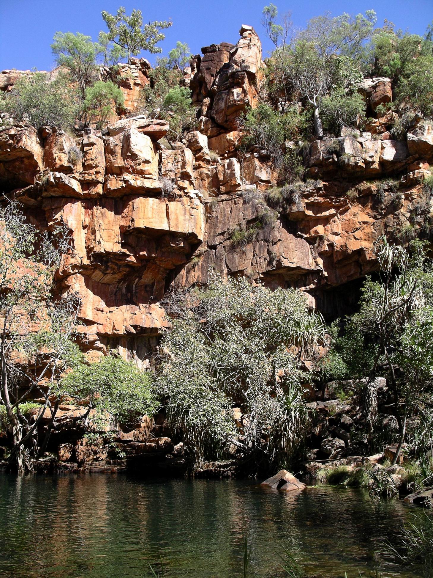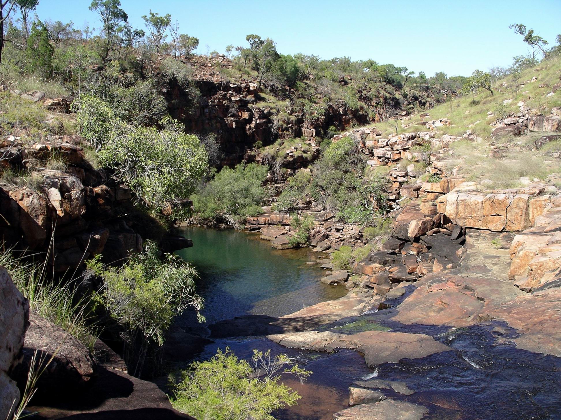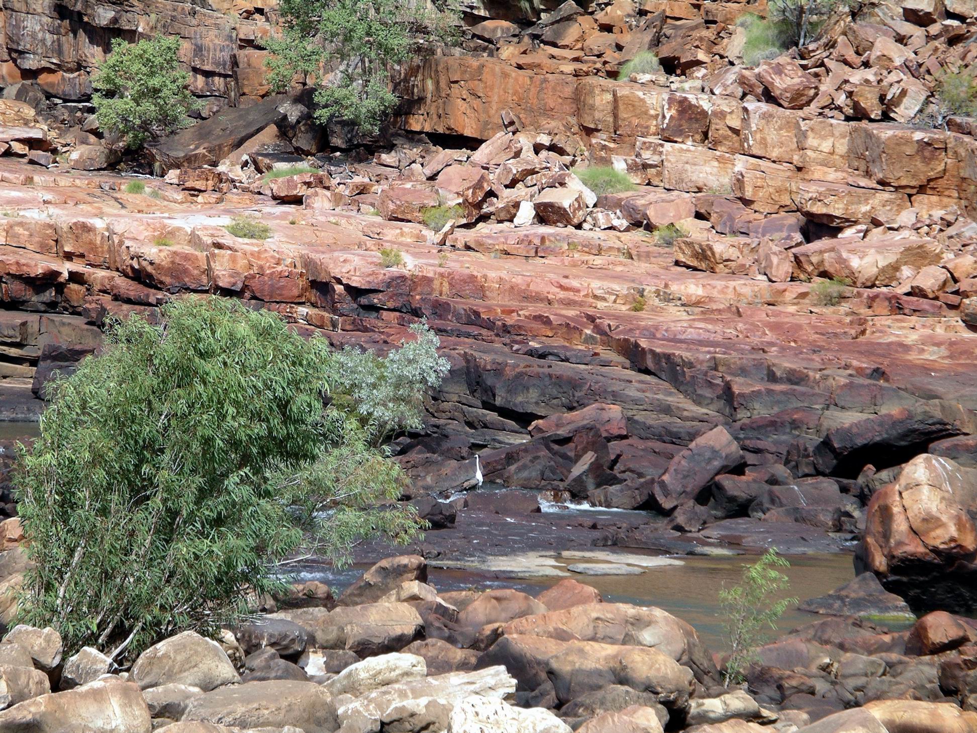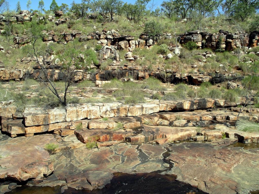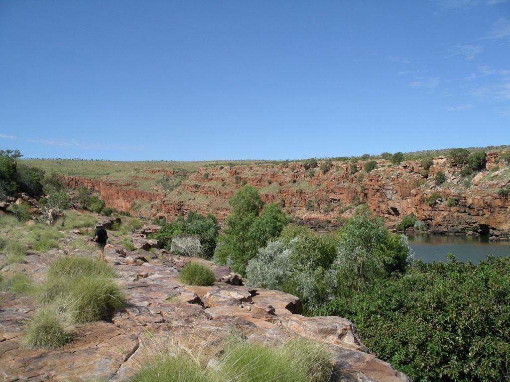 From the carpark, we had a walk of just over a km to the Gorge. Like the streams at Charnley River, the one here runs into the NW flowing Isdell River. Yet, just up the road where we were camped, the Manning River water ends up in the Fitzroy system, to the SW.