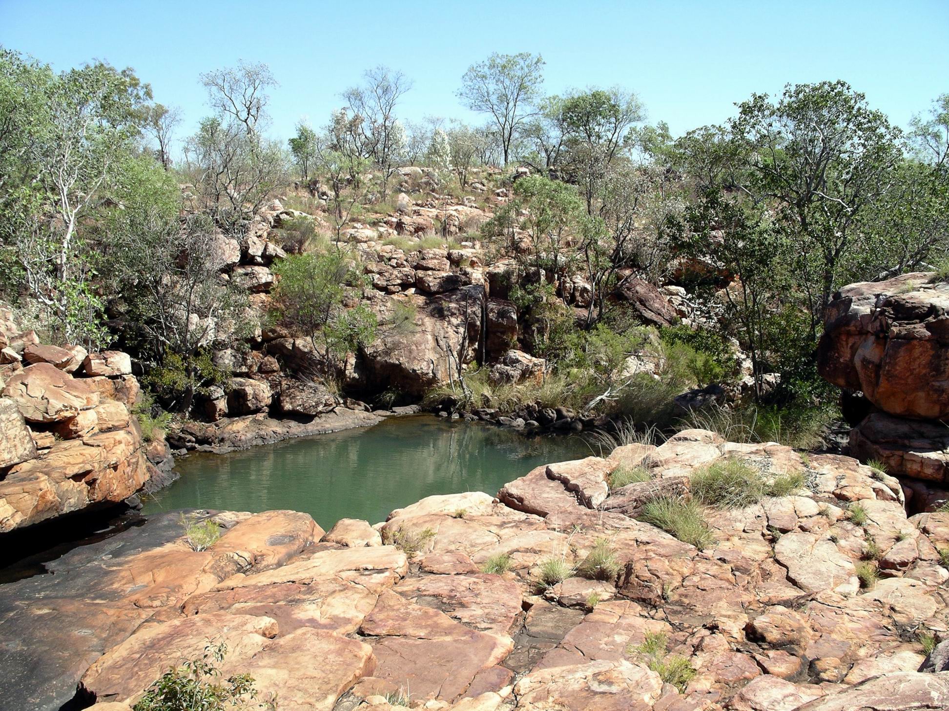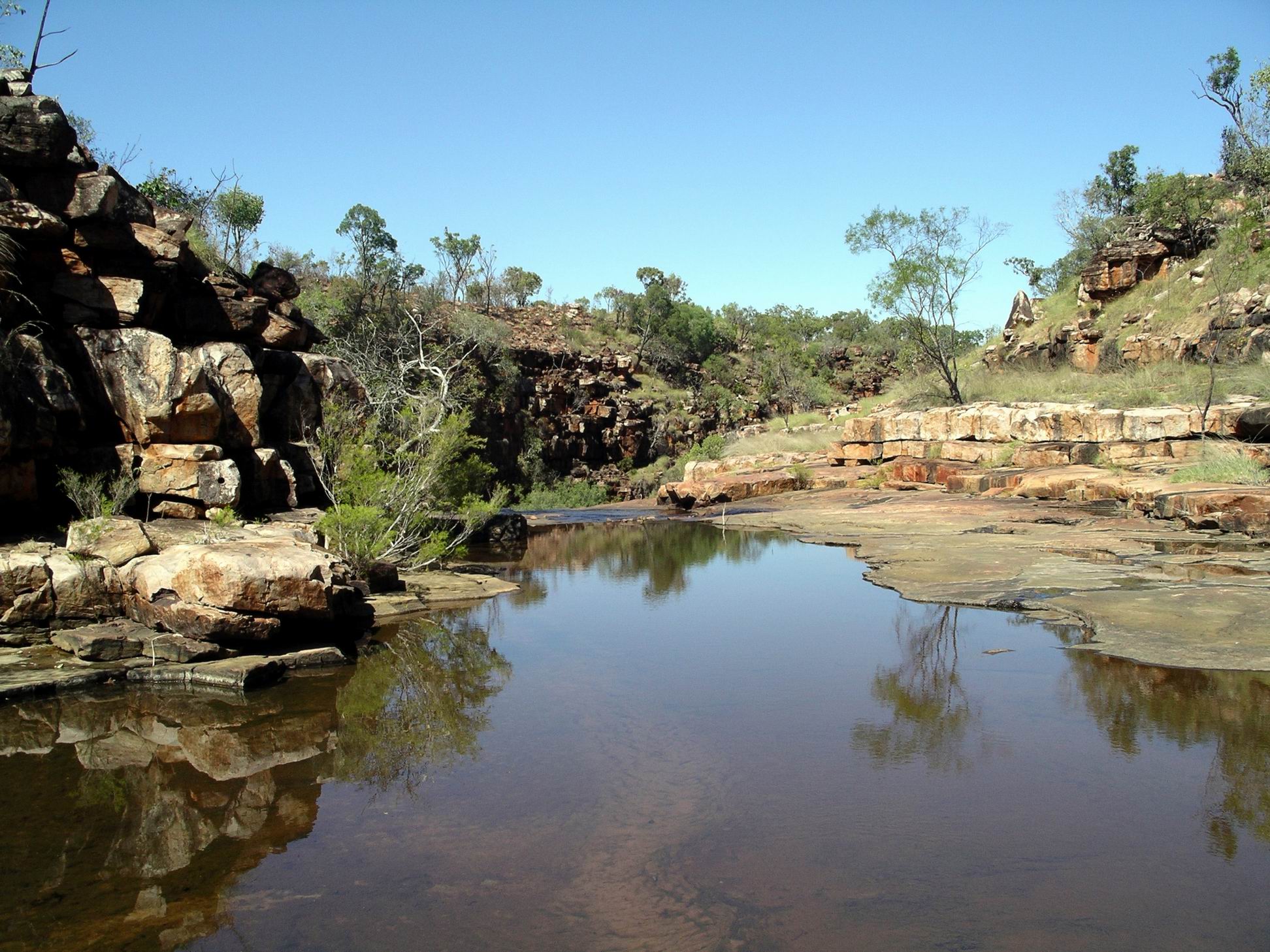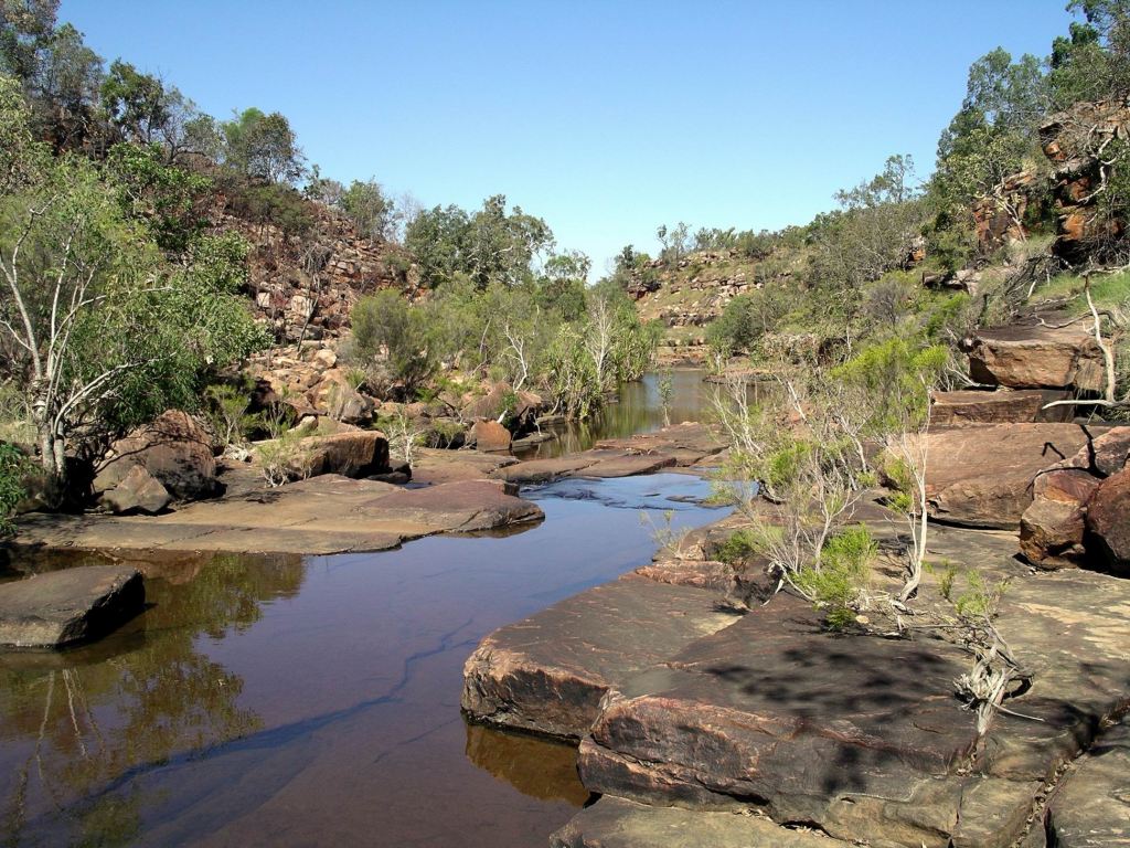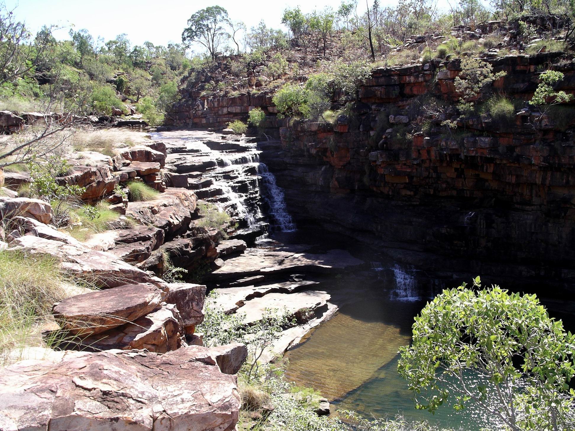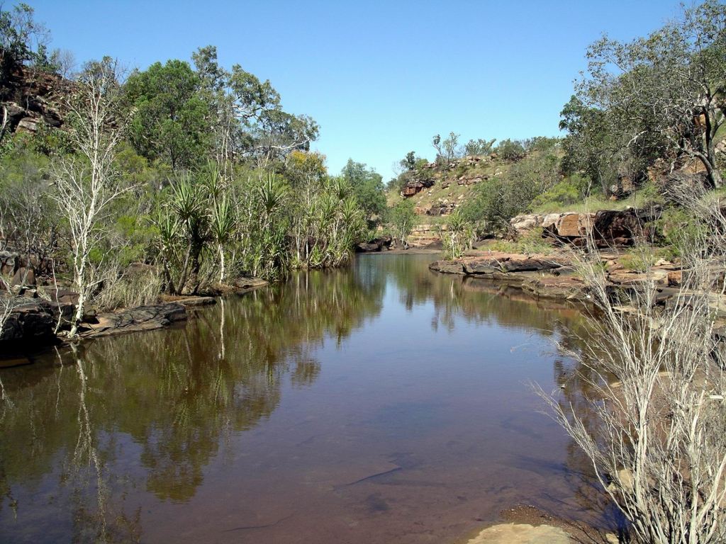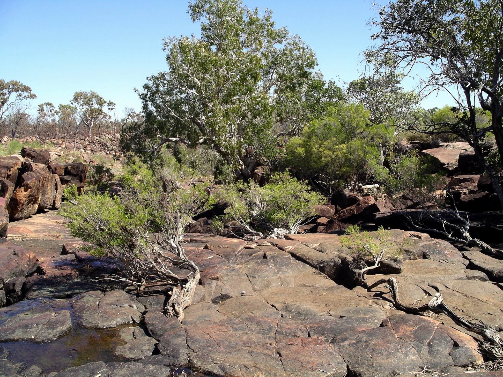 From the carpark, we had a walk of just over a km to the Gorge. Like the streams at Charnley River, the one here runs into the NW flowing Isdell River. Yet, just up the road where we were camped, the Manning River water ends up in the Fitzroy system, to the SW.