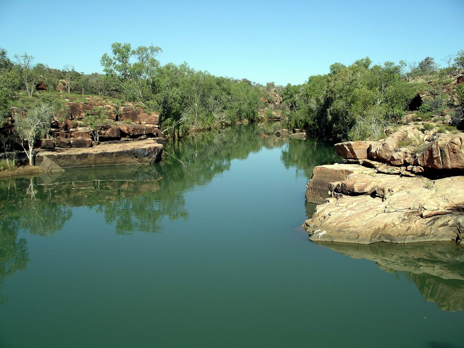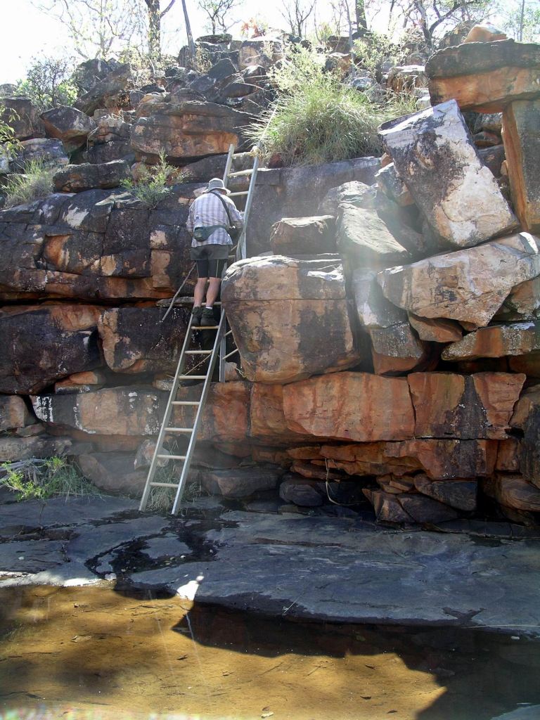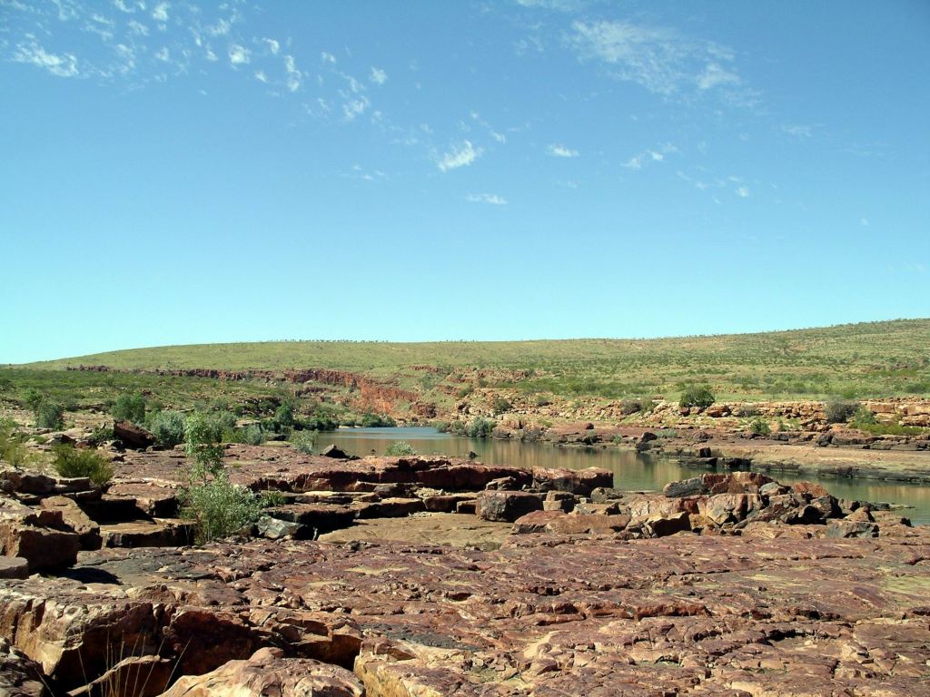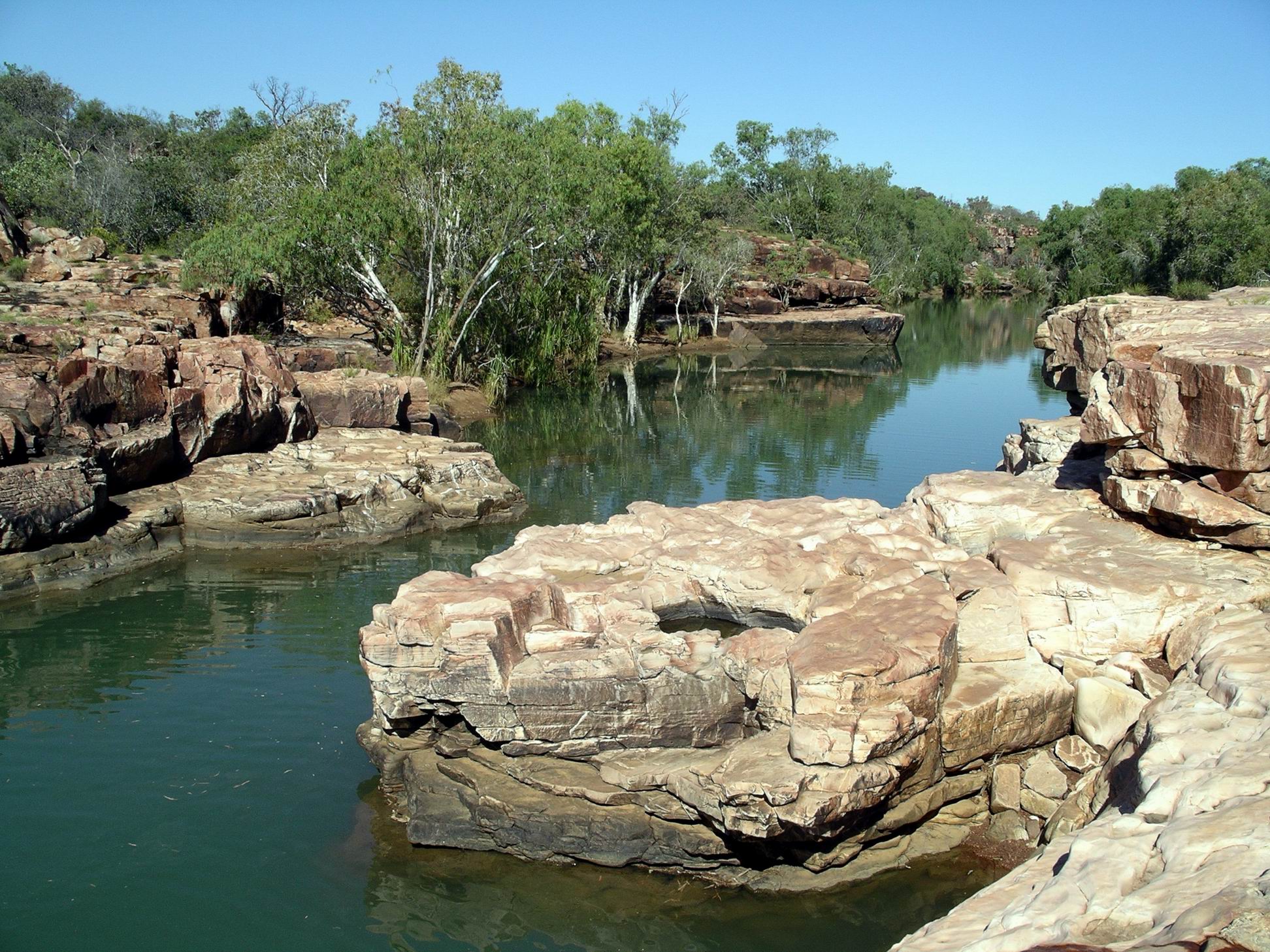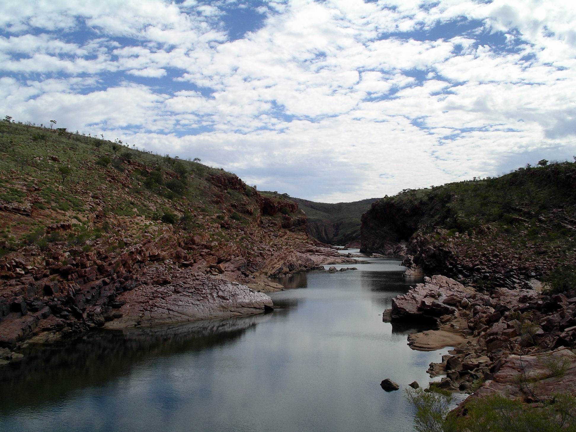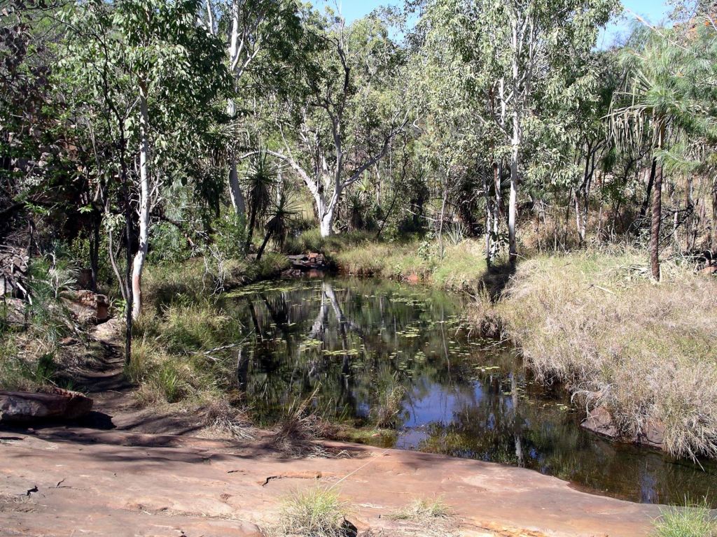 From the carpark, we had a walk of just over a km to the Gorge. Like the streams at Charnley River, the one here runs into the NW flowing Isdell River. Yet, just up the road where we were camped, the Manning River water ends up in the Fitzroy system, to the SW.