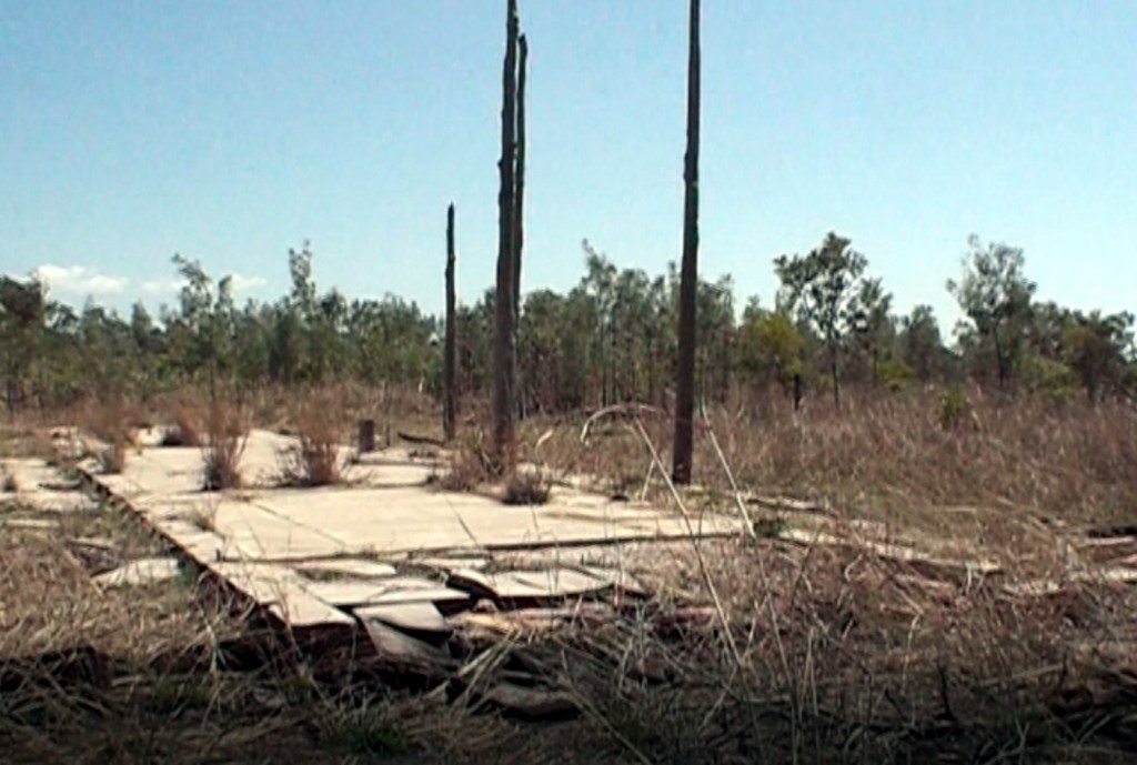 The family’s house; the phone box. The heap of rocks marks where the tank and stand was, pre-cyclone.