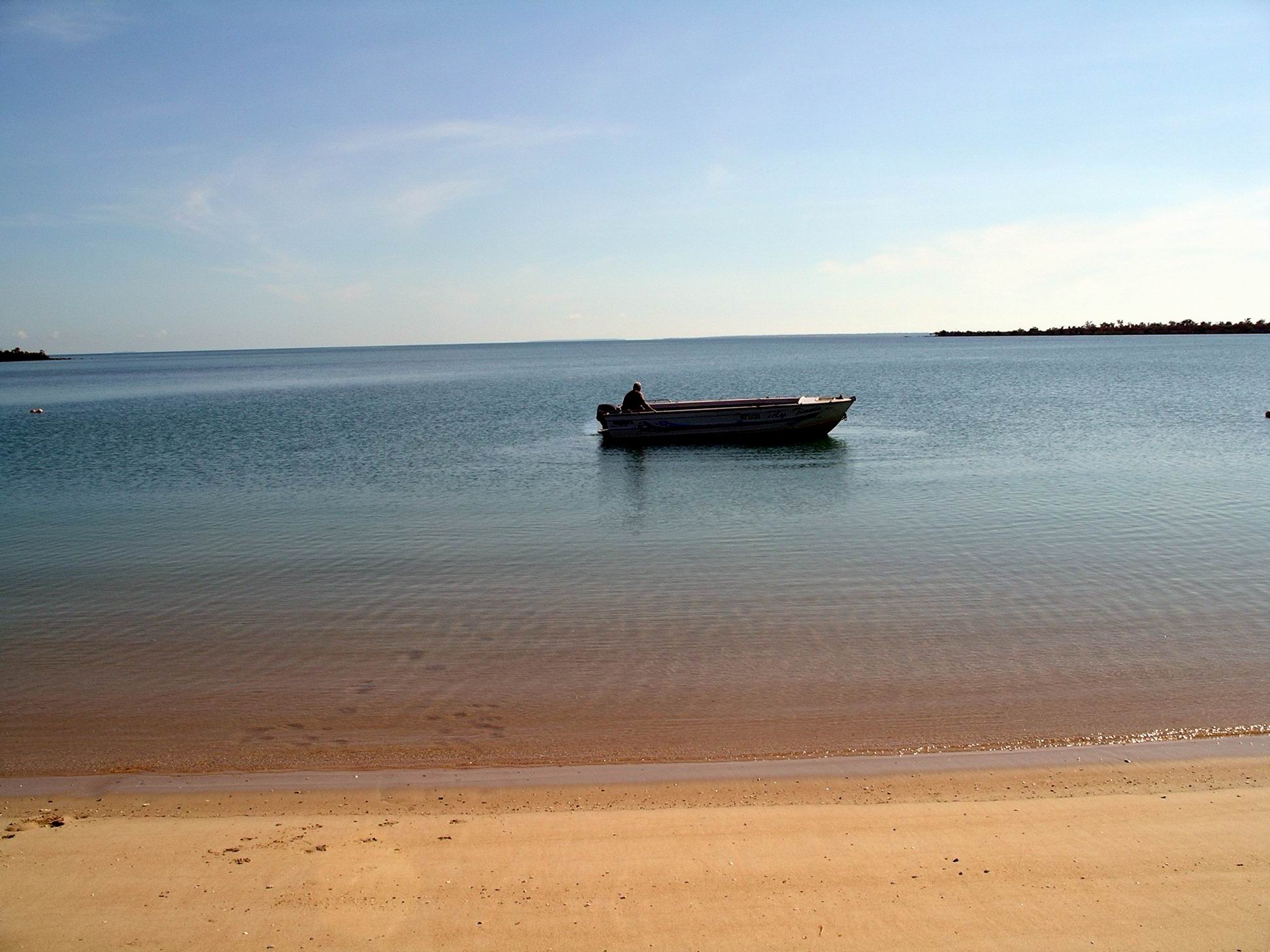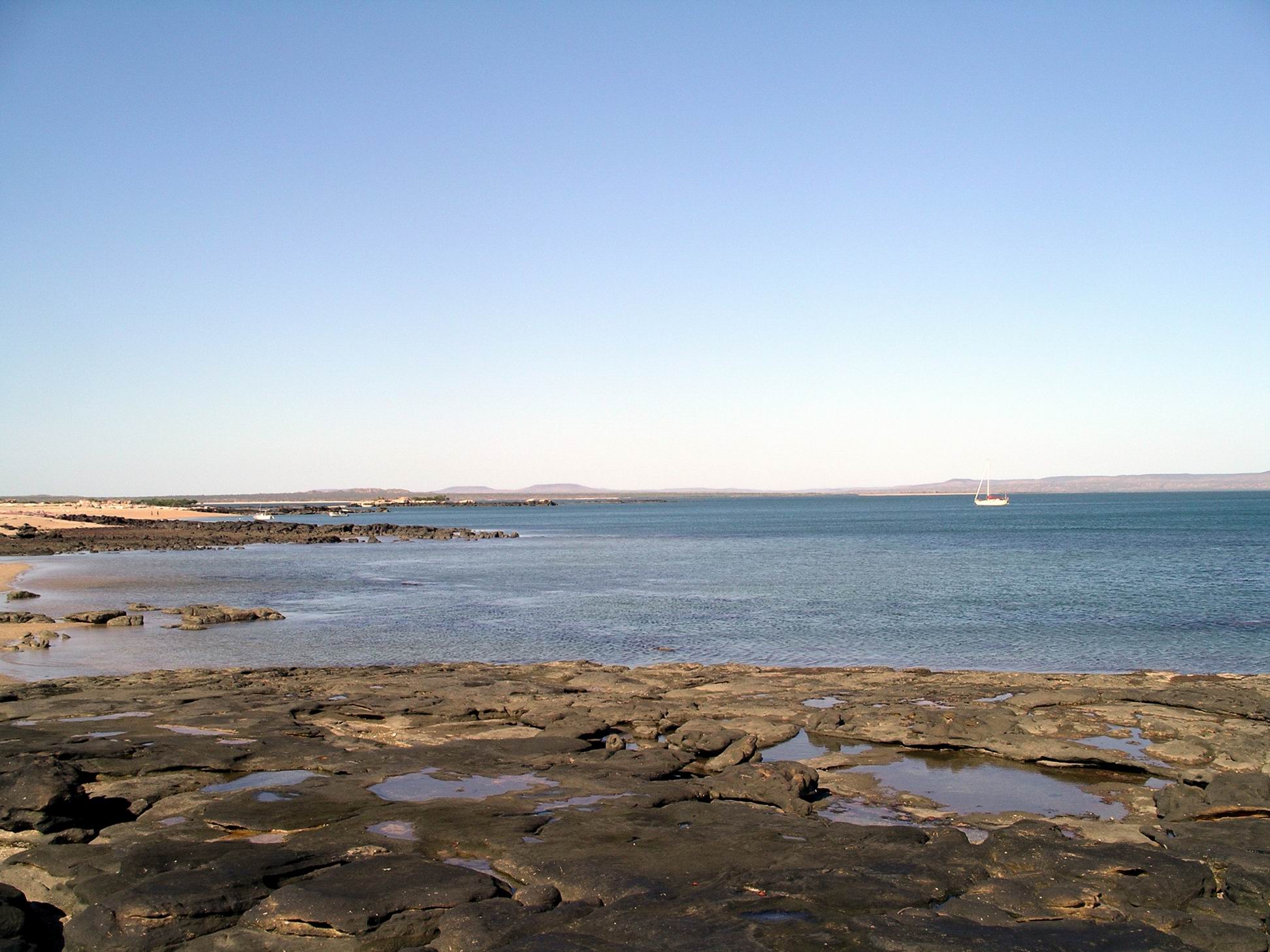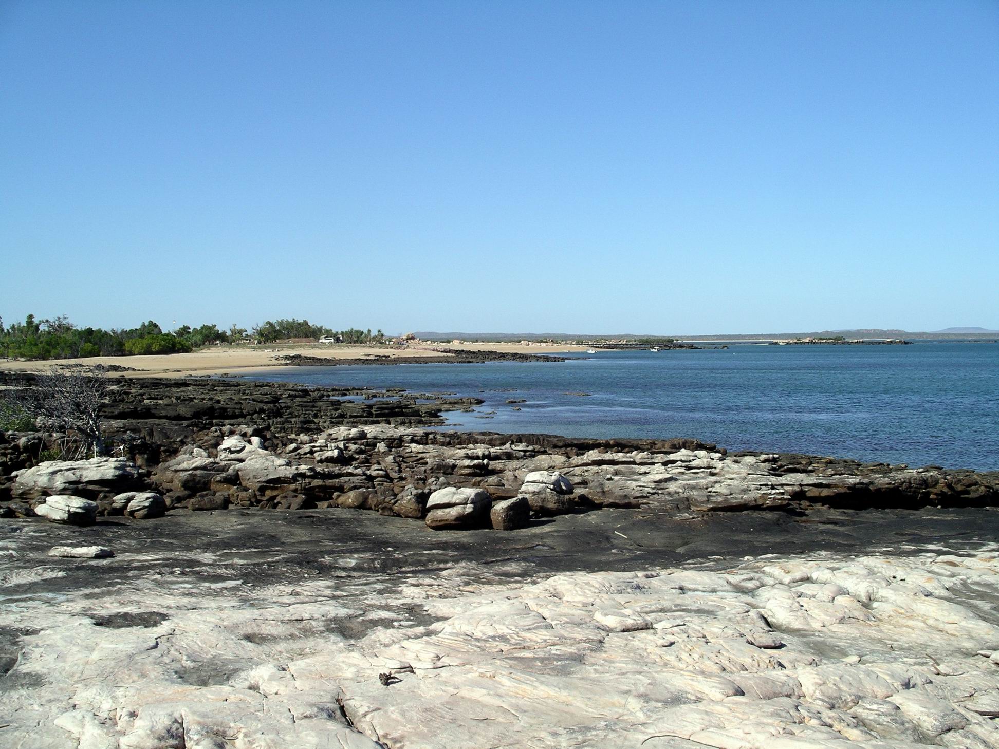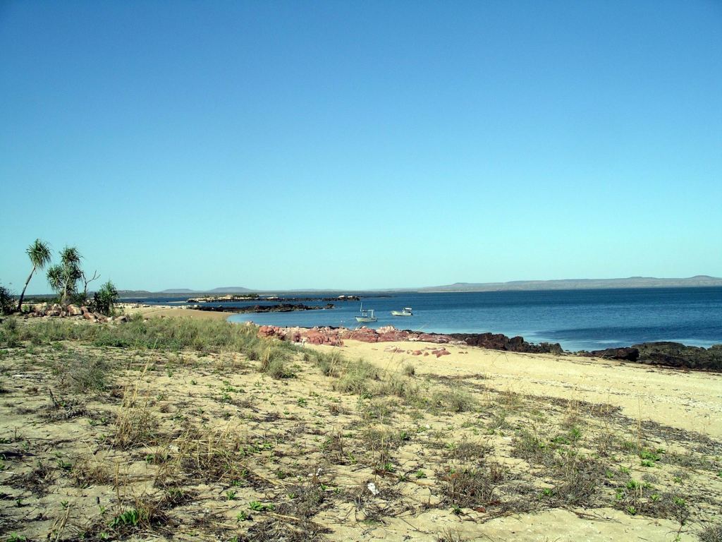 At McGowans – looking up the bay towards the King Edward River mouth and the barge landing