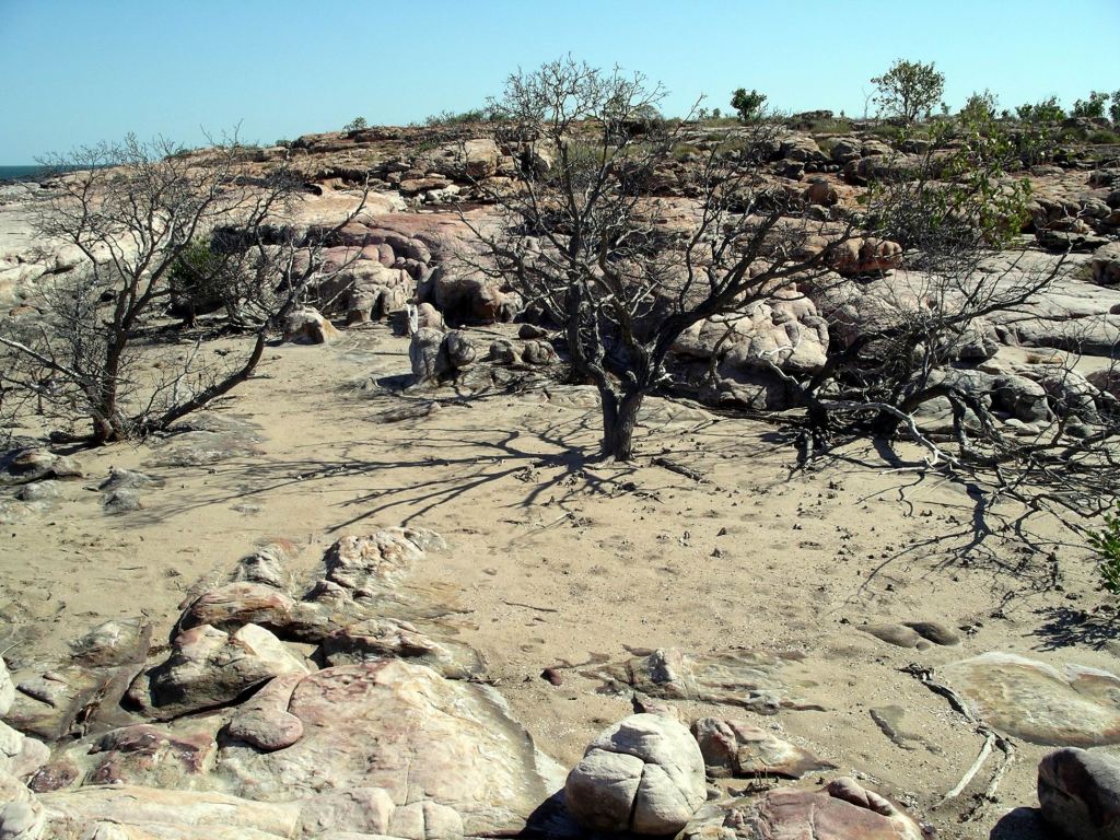 The fishing party next door to us left this morning, after a prolonged pack up. So much gear! They left behind two full drums of rubbish, plus some more left out in cartons, which the crows and then the camp dogs proceeded to strew around. Two couples with camper trailers who had also been not far from us, also left – to go camp at Kalumburu. They were waiting for stuff to repair broken shock absorbers, to be flown in on the mail plane. They did not like it out here, they said. I could see why! They also left a lot of rubbish, which the crows also attacked.