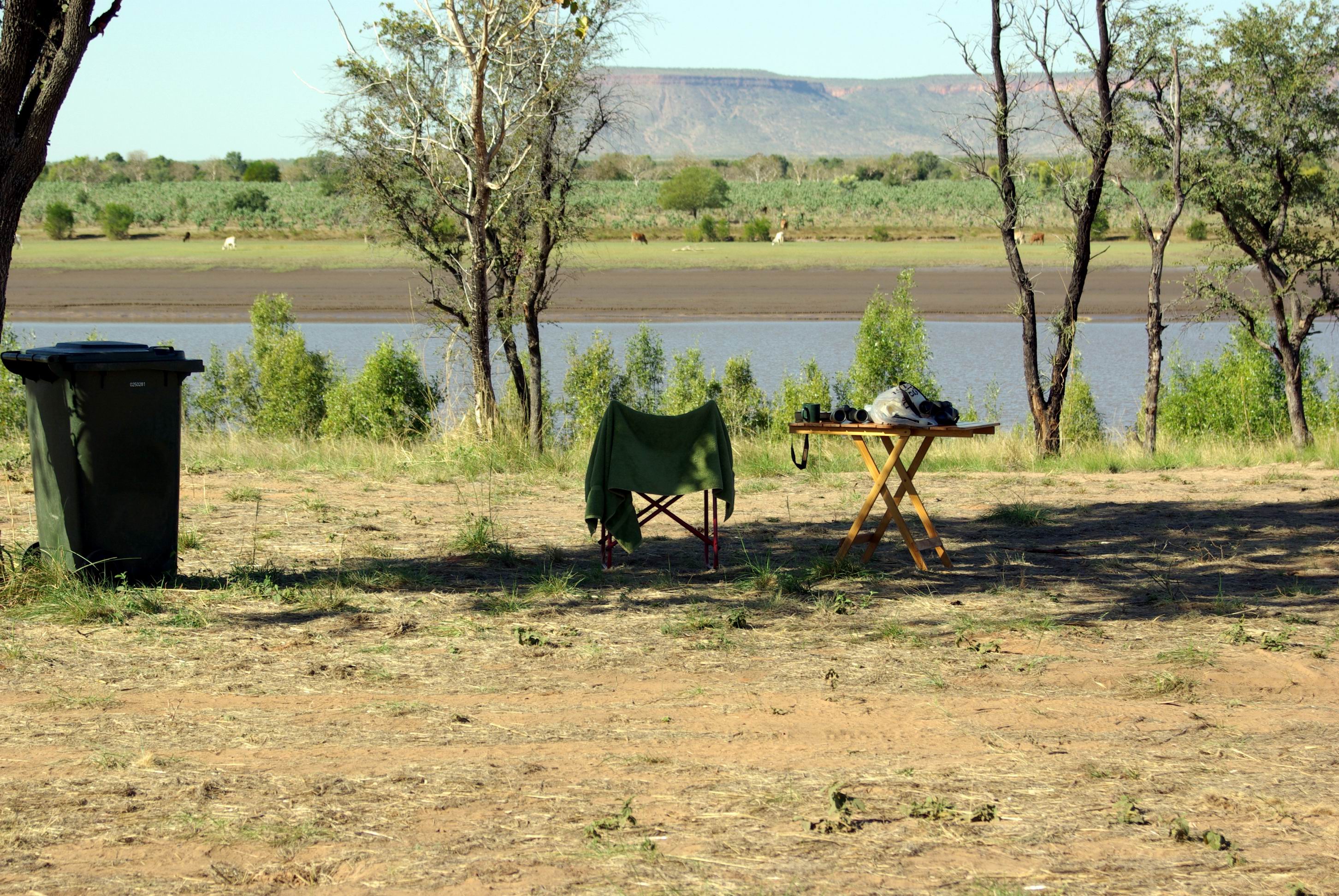 M arrived from El Questro. She had done some walking and driving yesterday, but decided that she, too, was ready for a dose of “town”. They put her on a site that overlooked the lake – pleasant, but a bit of a distance away from us.