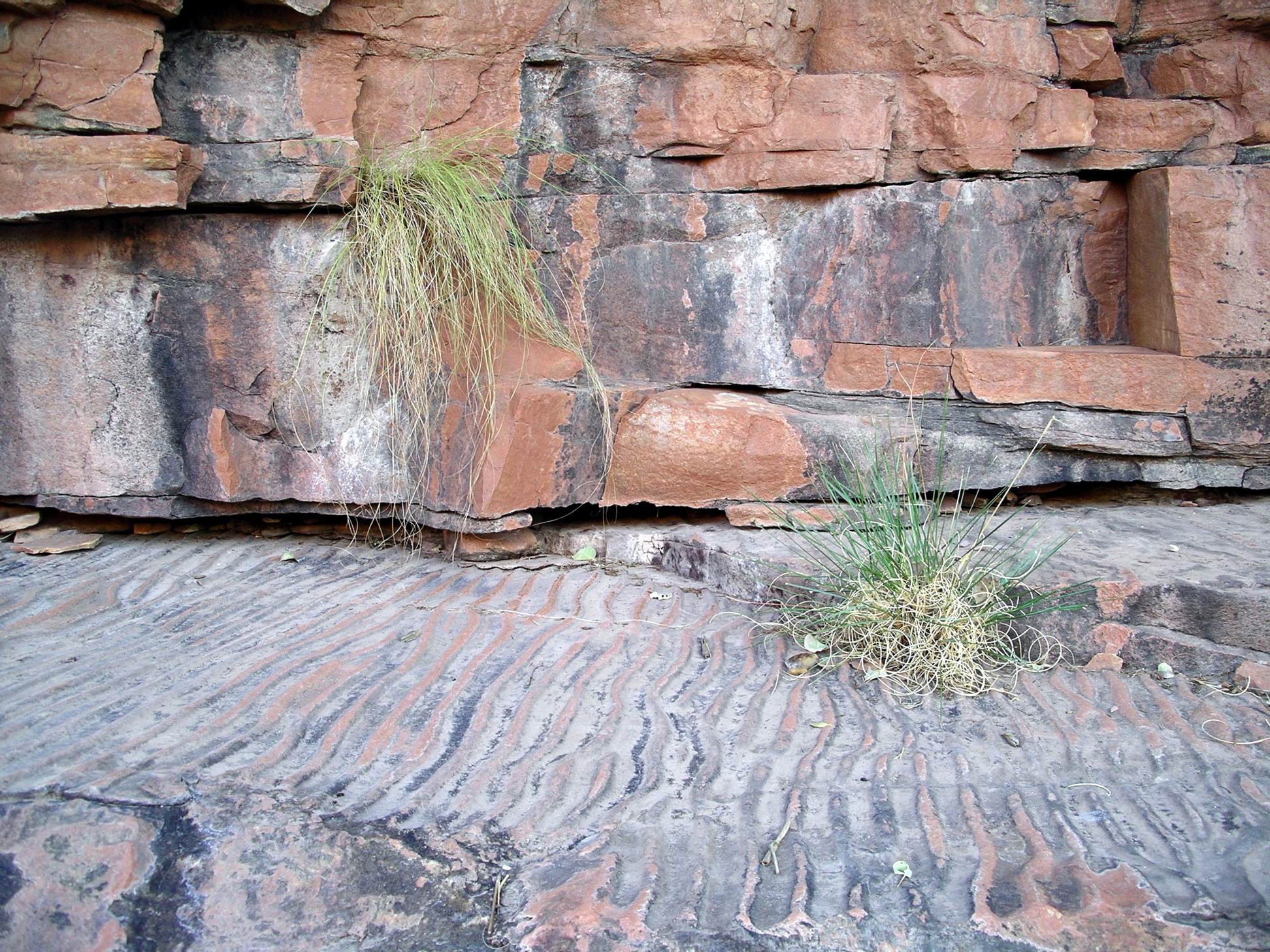 On Monday, M and I walked to the shops, in the morning, and to the Post Office. Then we explored some streets, walking on our way to meet John at a yard that also had slabs of the local rock. I think we inadvertently took a really circuitous route!