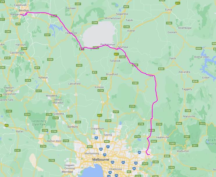 The way home was the usual – Heathcote, Seymour, Yea, Lilydale.