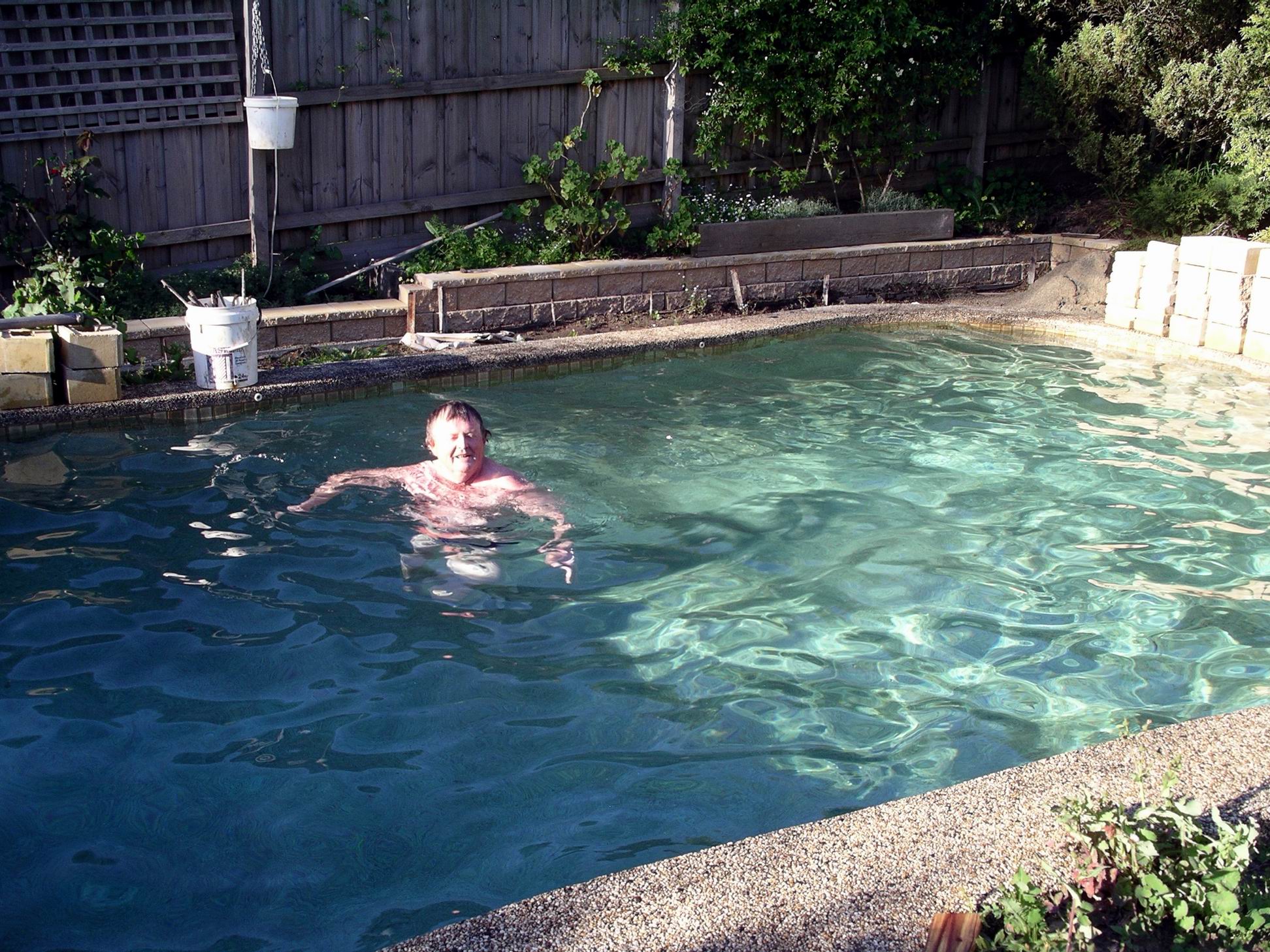 Surrounds not yet finished, but pool ready for swimming again – after a decade as a duck pond!