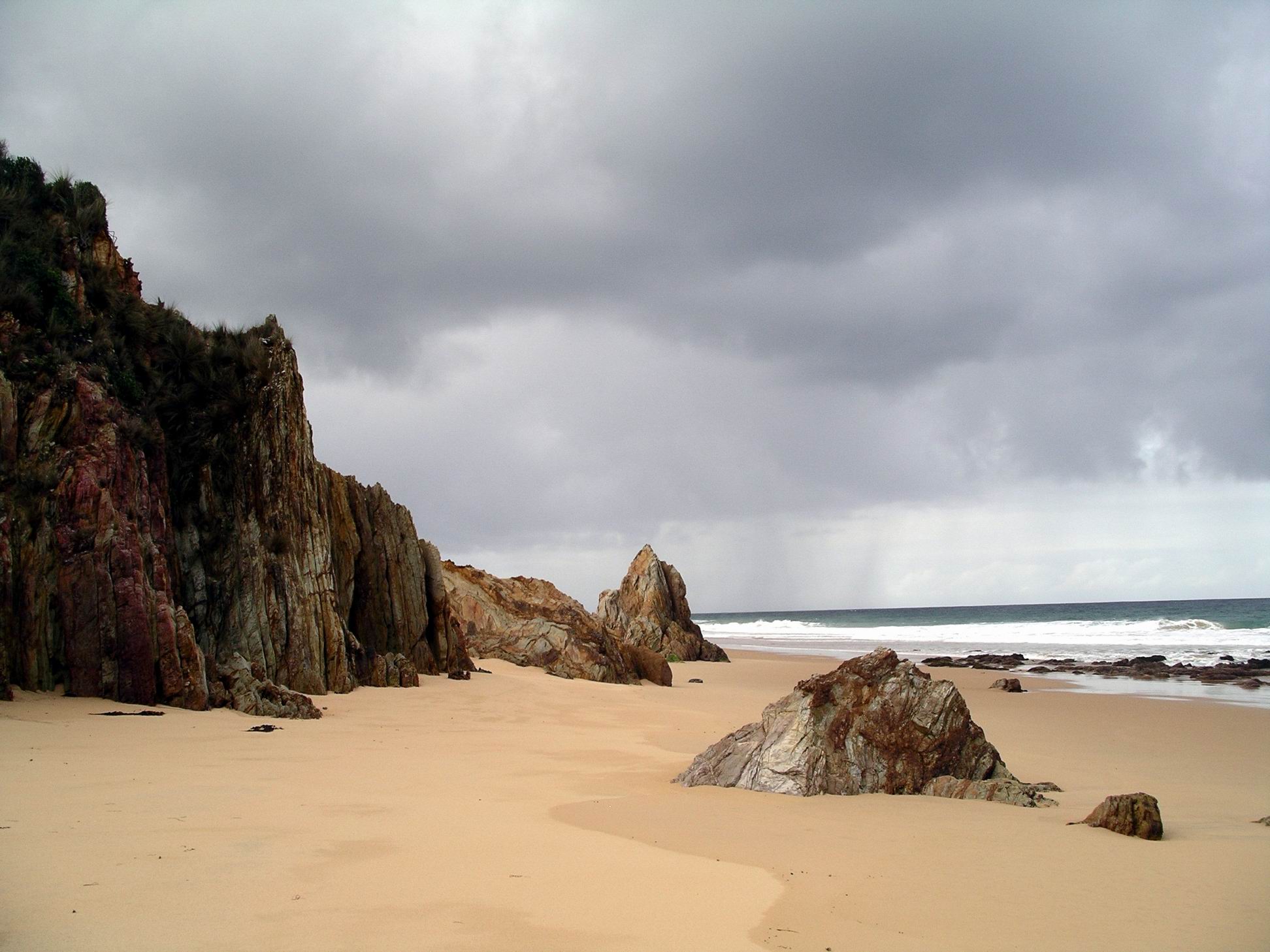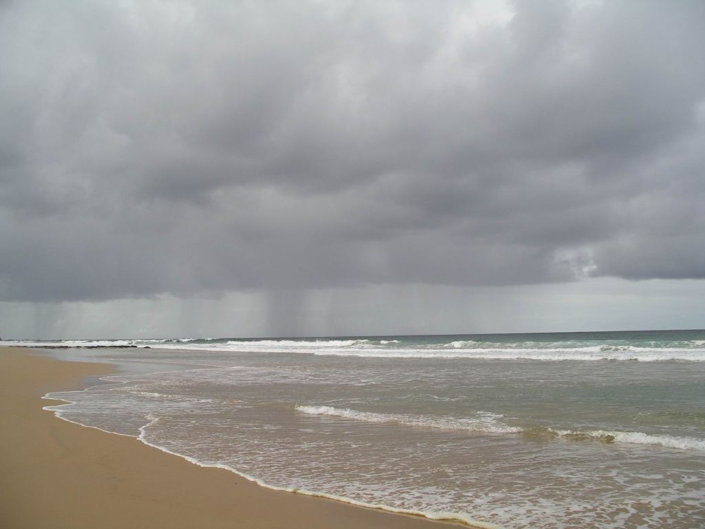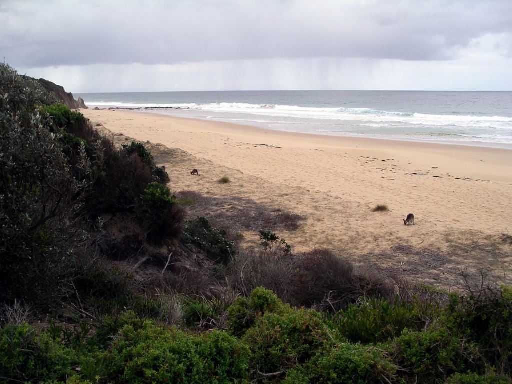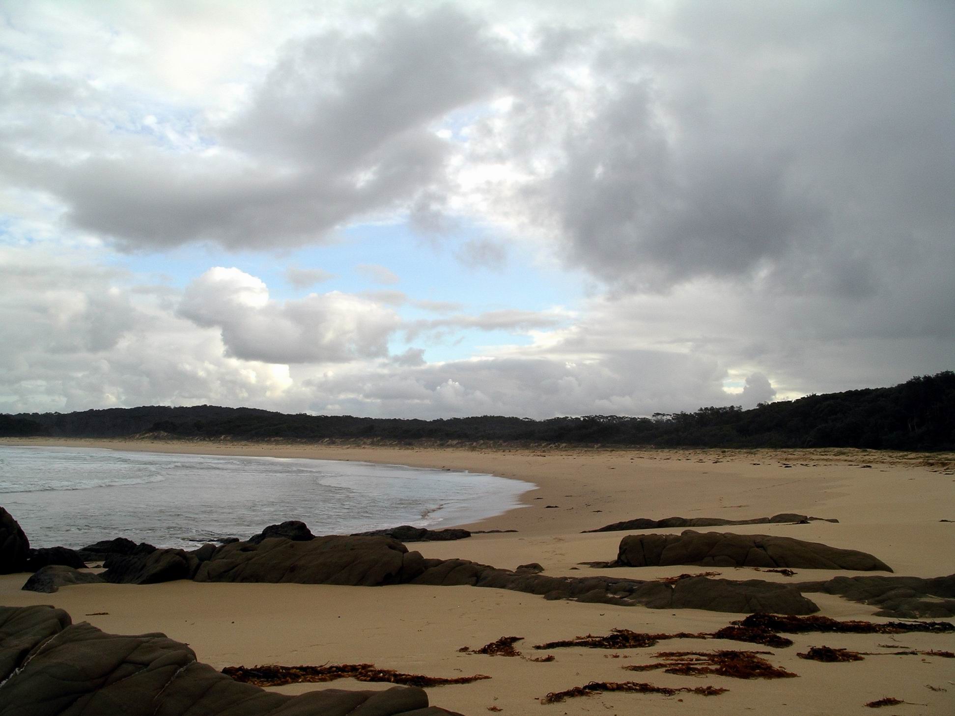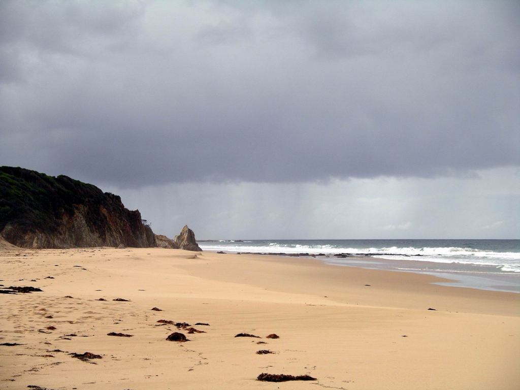 After about 10kms of this, turned onto a dirt track that took us towards the coast – in teeming rain, with low visibility – to Gillards Beach campground.