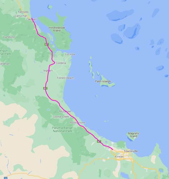 We completed the loop drive through pretty valleys with small farms and emerged back onto the Bruce Highway about 10kms north of Cardwell.