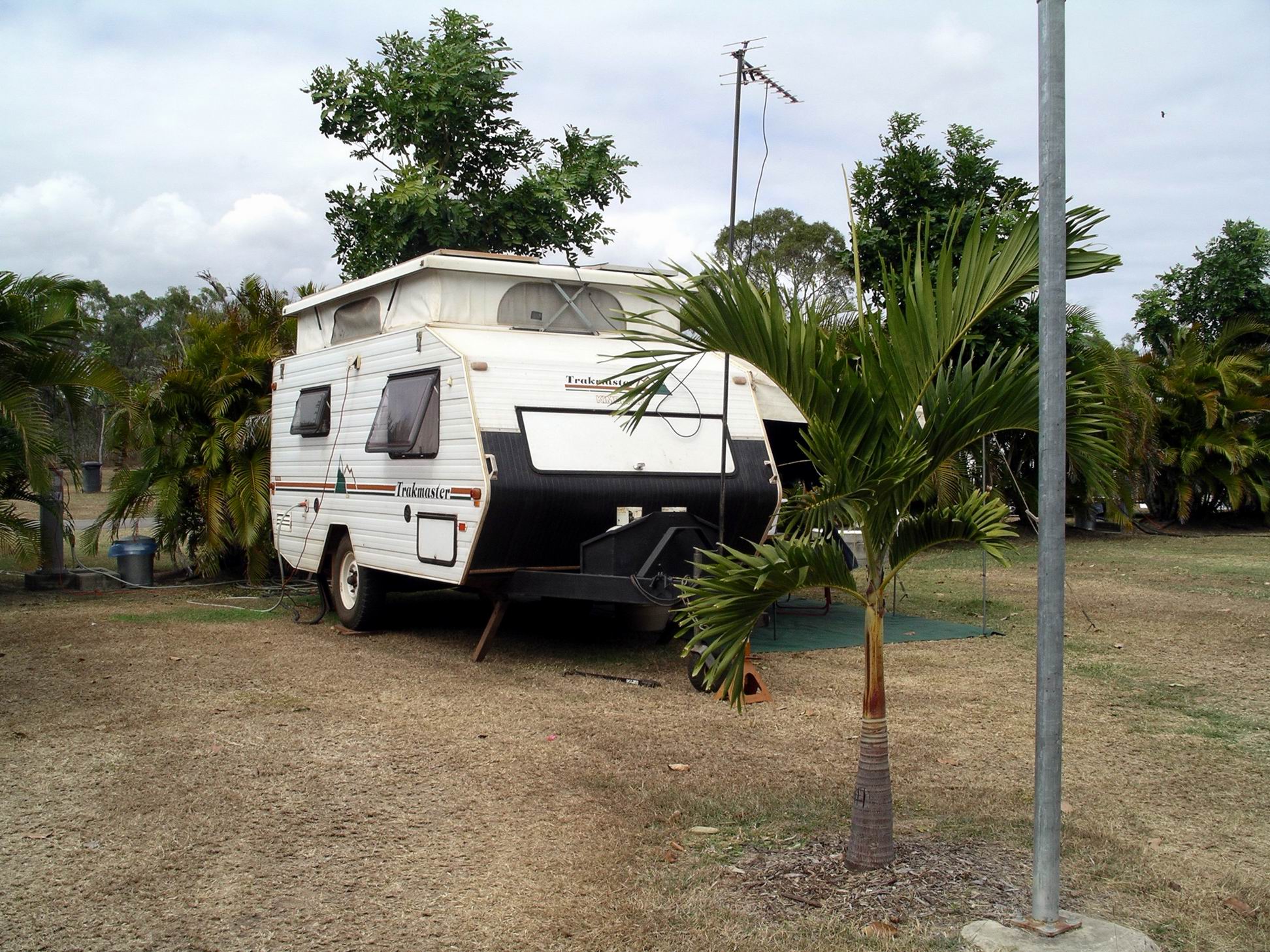 She did offer me a site, which I knew was one of those that sloped quite strongly down to the billabong edge. We’d watched vanners having great difficulty setting up on those sites, where it was almost impossible to get a van level, and very hard to hitch and unhitch. But she didn’t tell me it was a sloping site!