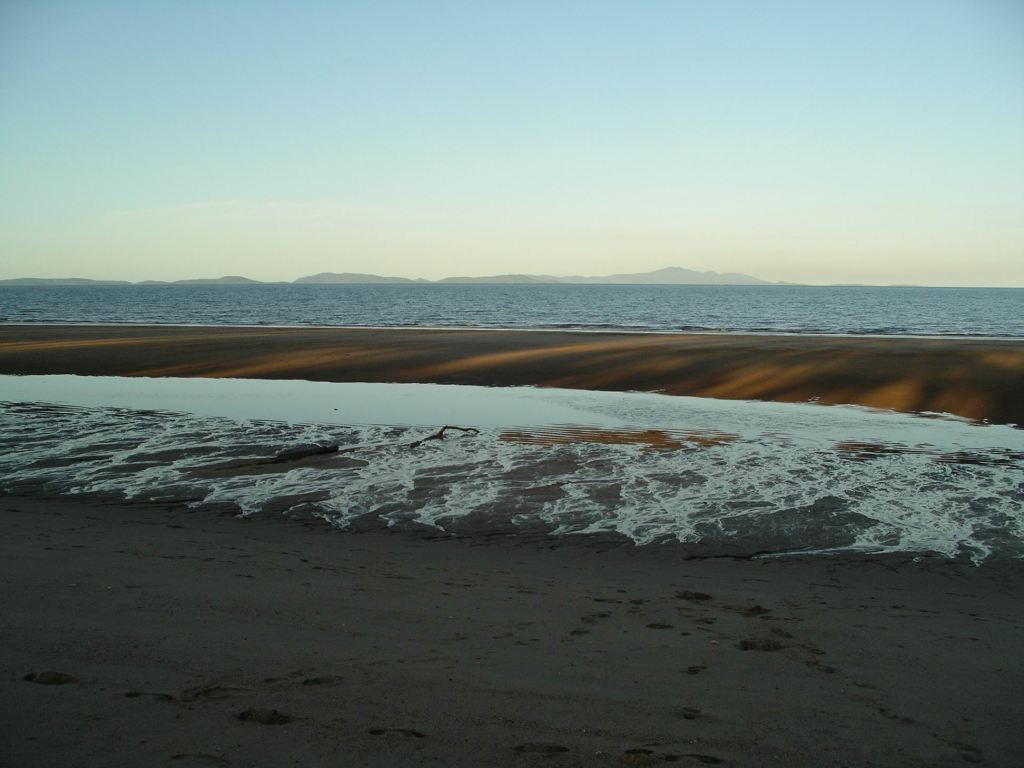 There was great firm walking on the wet sand. The outlooks along the beach, north and south, coming and going, were very pretty, and there were the offshore Palm Islands group to look at, too. We could walk in the shallows left in dips in the sand, if we felt like a paddle.
