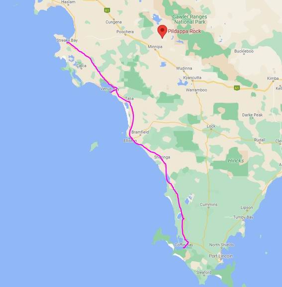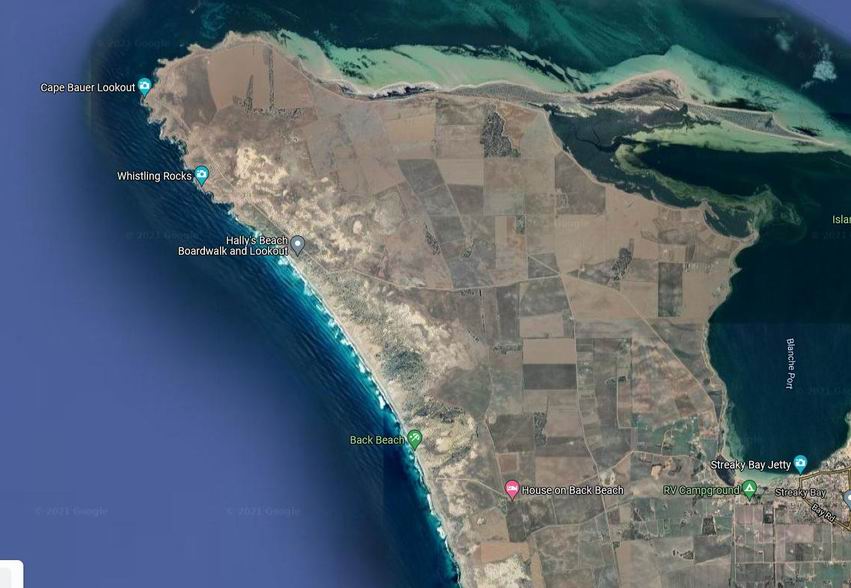 Since it was just a short distance further on, we drove to Billy Lights Point. This gave a good view of Boston Bay, and the large Boston Island off Port Lincoln. This island was a privately owned farm, grazing sheep. I wondered about the origin of the name, Billy Lights Point – maybe it was named for Colonel William Light, the first Surveyor General of SA, the man who rejected Boston Bay in favour of Adelaide.