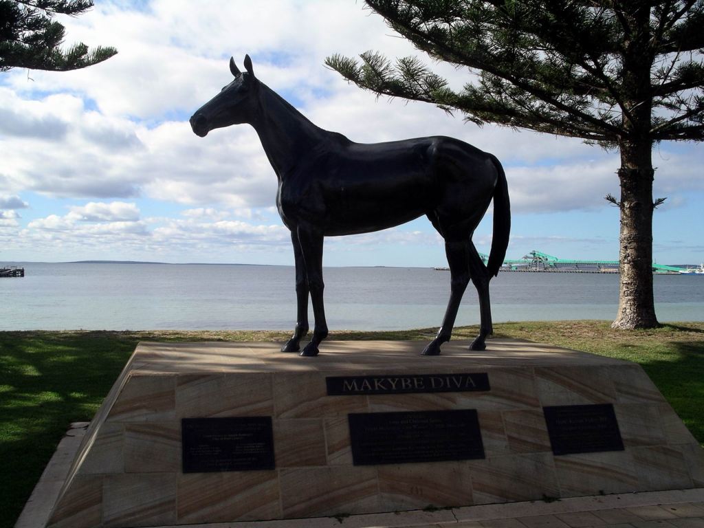 We meandered around the shops and along the foreshore parkland. Saw the statue of Port Lincoln’s famous Melbourne Cup winning horse, Makybe Diva, owned by a local tuna fisherman. She is the only horse ever to win three Melbourne Cups, and the only mare to win that race more than once.