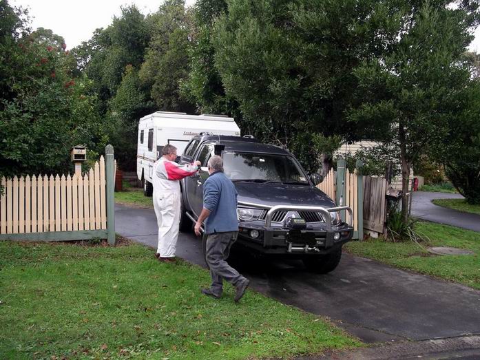 John walked to some shops, which were about 1.5kms away, to buy some TV aerial cabling. He’d brought some with us, but couldn’t find it! I said there was ample storage room in Bus…… He took the phone and called me to say he’d got there alright. I asked him to also buy a bottle of wine for tonight, not realising that meant he had to walk an extra km or so. He came back with five bottles – a special deal at the bottle shop, which had seemed great – until he had to carry them back!
