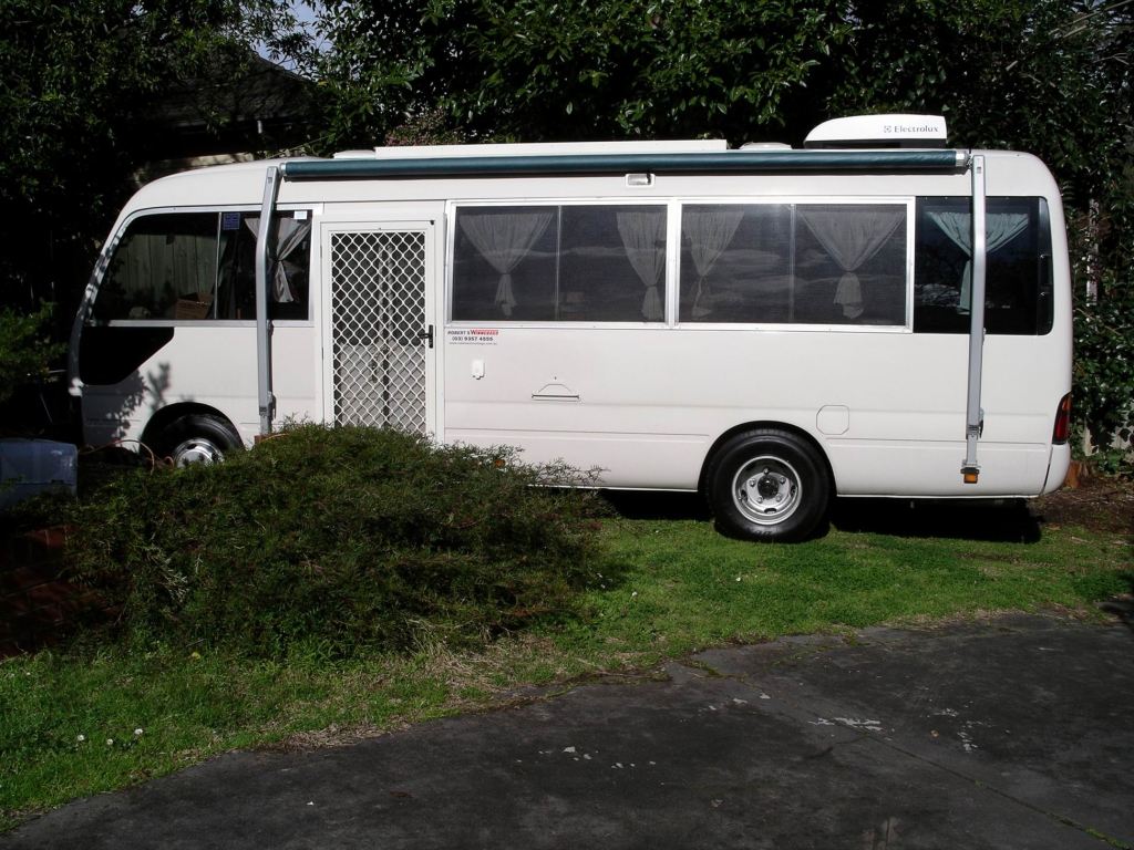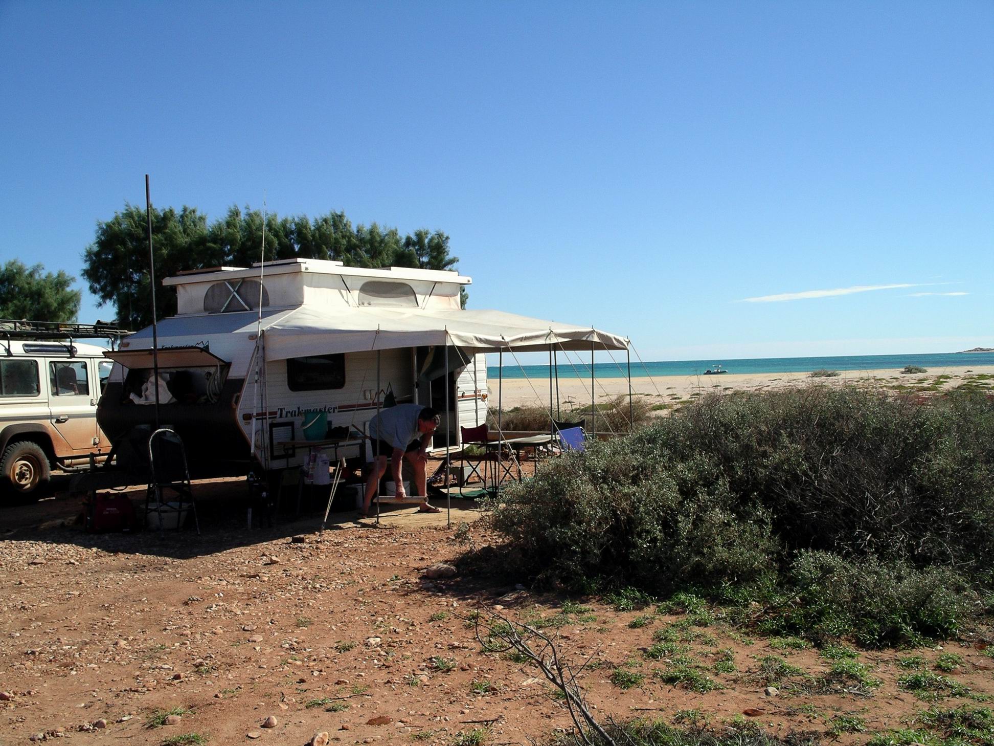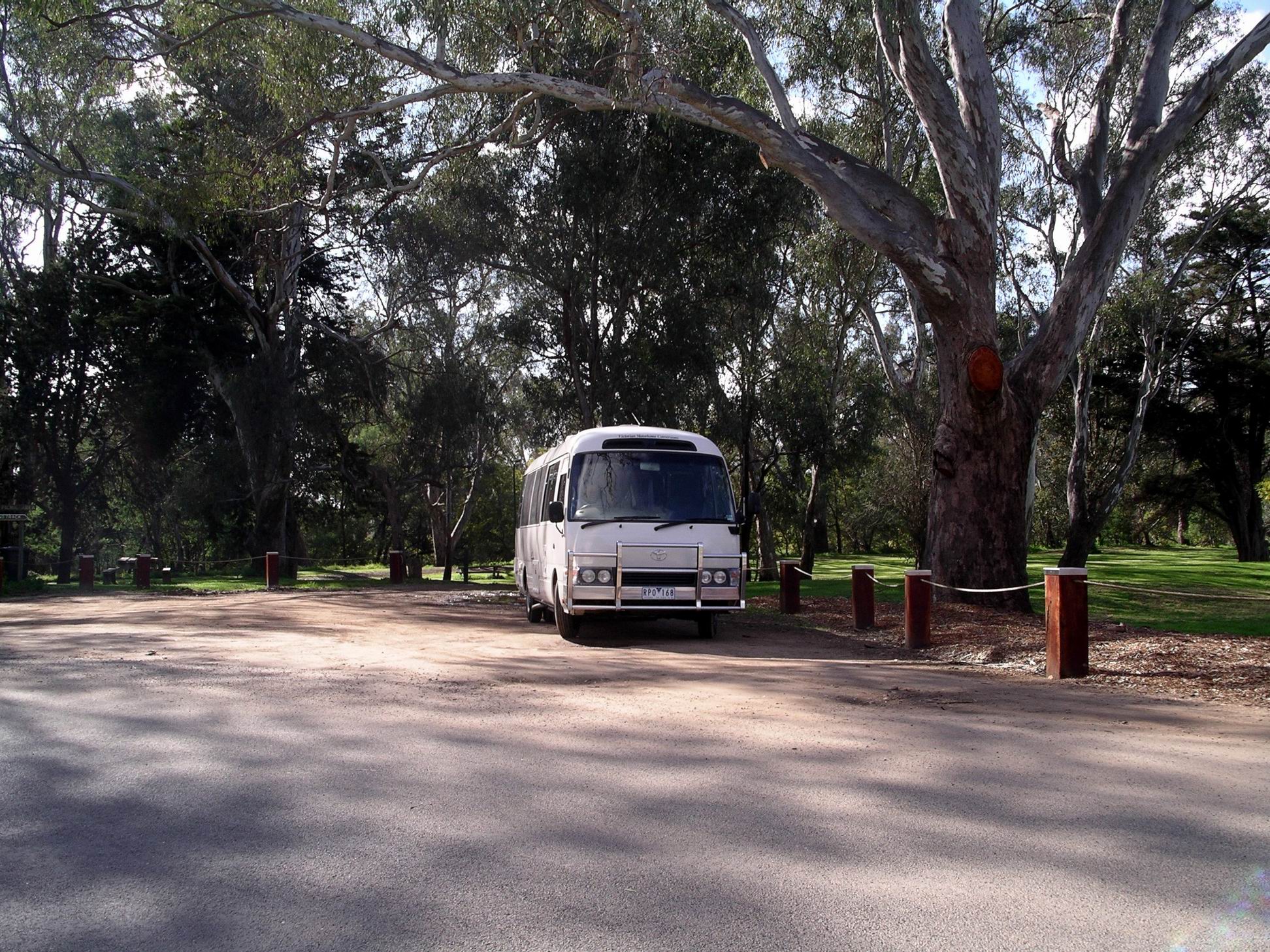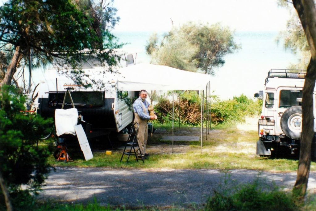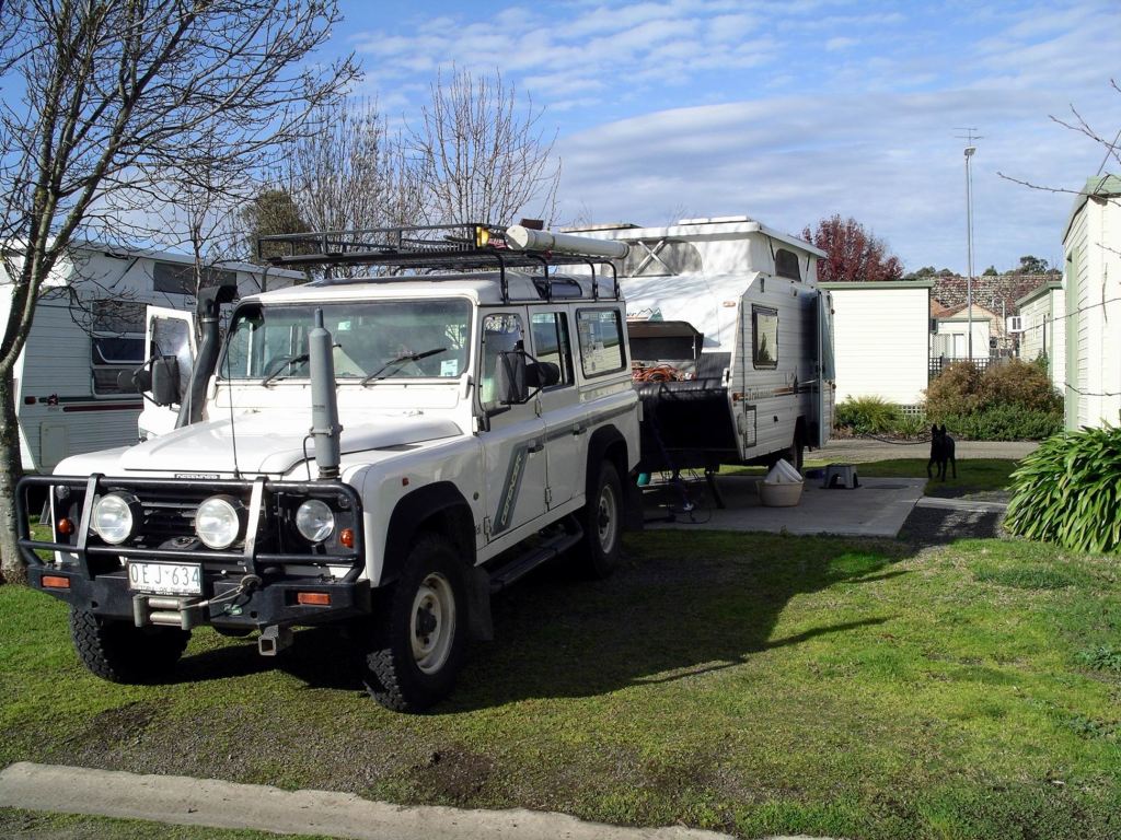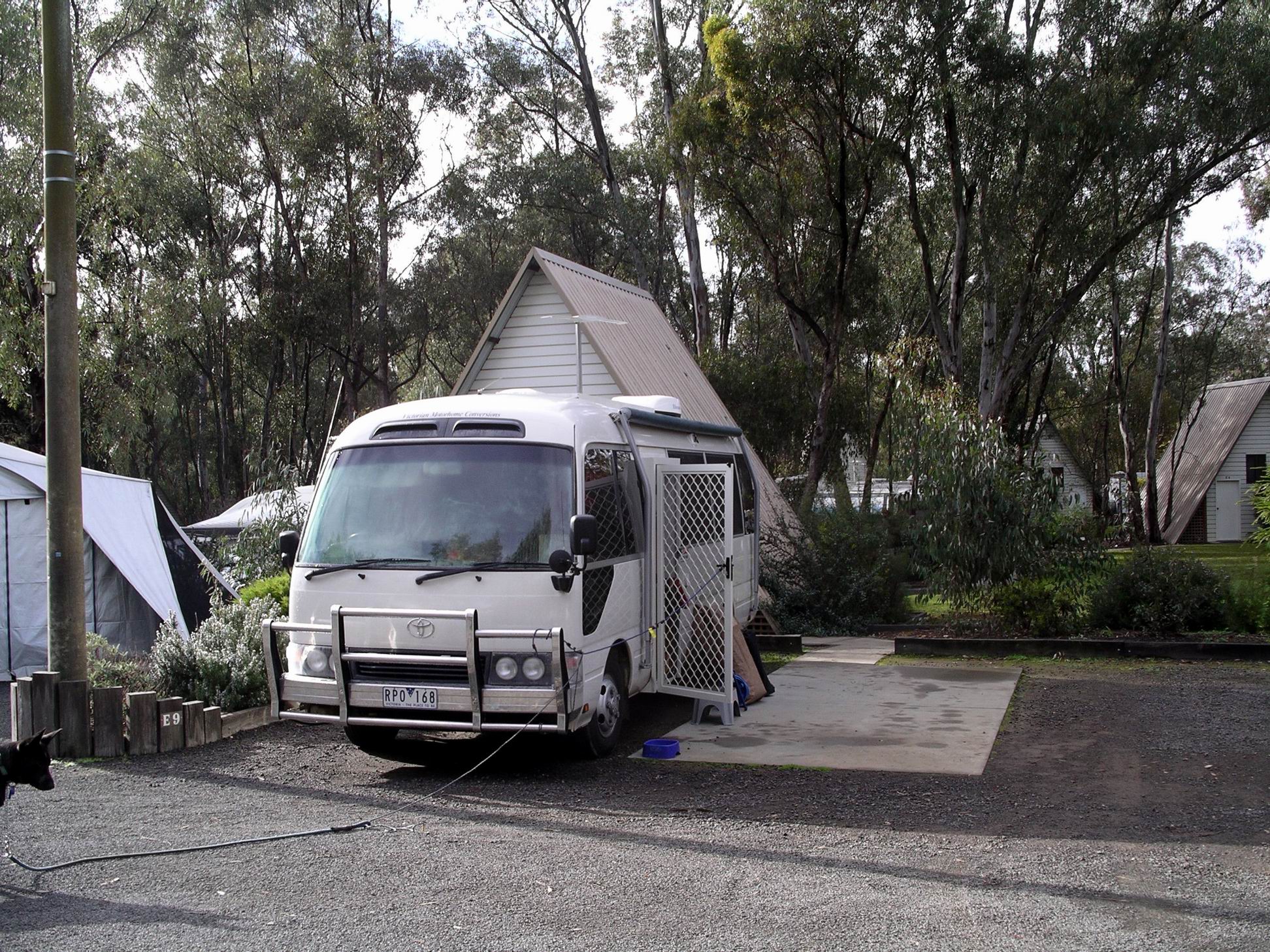 We gave dog a couple more lots of park circuits during the day, in between showers. The big bull bar on front of Bus made a great dog tethering point. She was quite happy to be out there, with her camp bed, as long as one of us was sitting outside under the awning. If we were inside, then that was the place to be! She discovered she could sit in my front seat and watch the world go by out the front and side windows. I made a note to find something like an old beach towel, back at home, to cover my seat for dog’s daytime use.