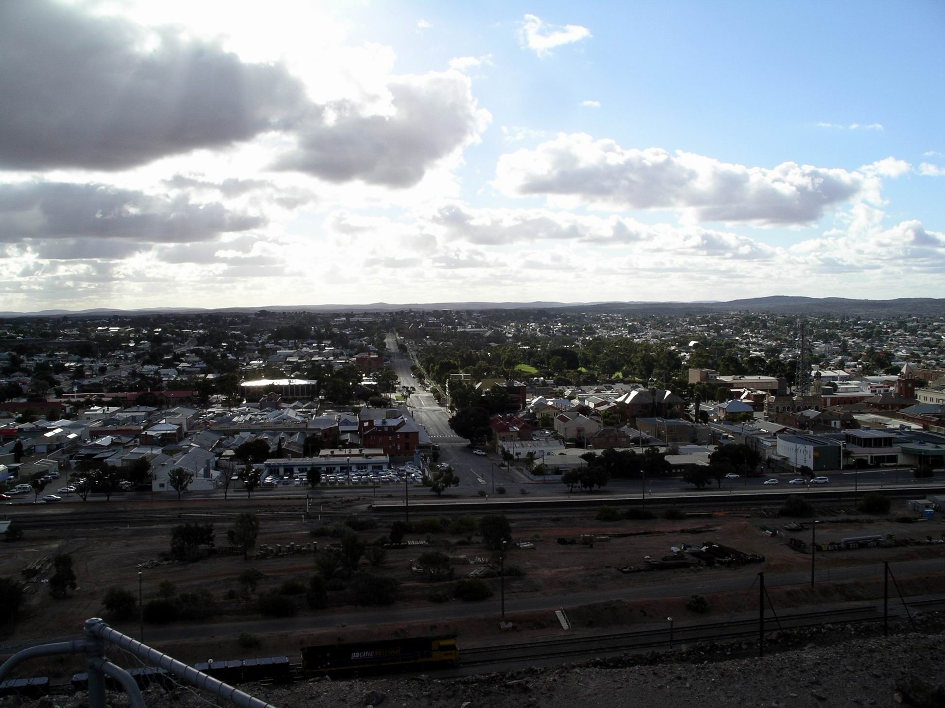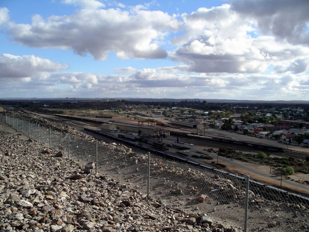 From the top, one looks out over the main, central part of the town, in one direction, and South Broken Hill in the other. It is very much a physically divided town. As well as the Line of Lode bisecting the town, the east-west railway runs just below the hill line.