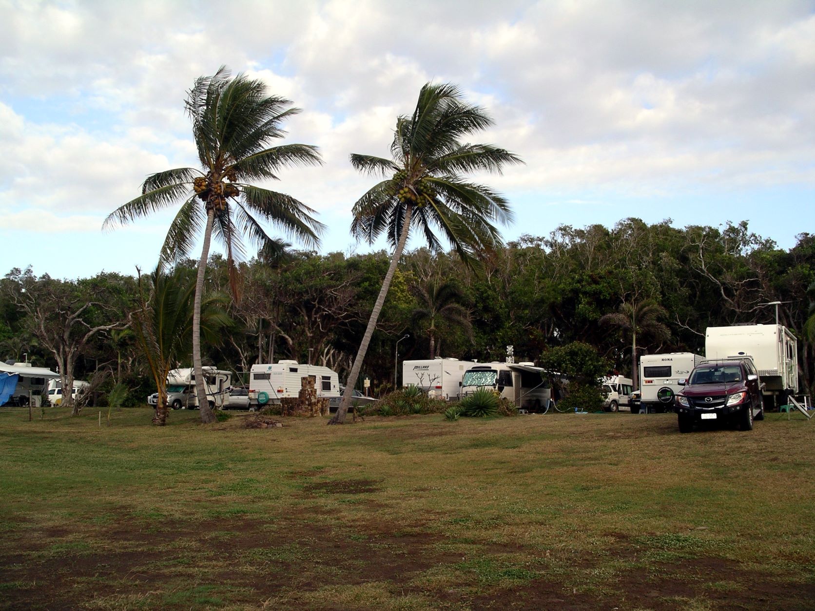 Couey and I spent much of the day inside Bus, because of the neighbouring roaming dogs. Even when tied up, they were on long ropes that enabled them to reach quite a distance. They rushed at and barked at several passers-by. Definitely not good camp dogs. Eventually, they charged out at and frightened a lady from a nearby large motorhome, who had a small, extremely gregarious white fluffy dog. The lady was the mother of the hotel complex manager, so action was taken, warnings were issued, and the dogs were more restrained after that.