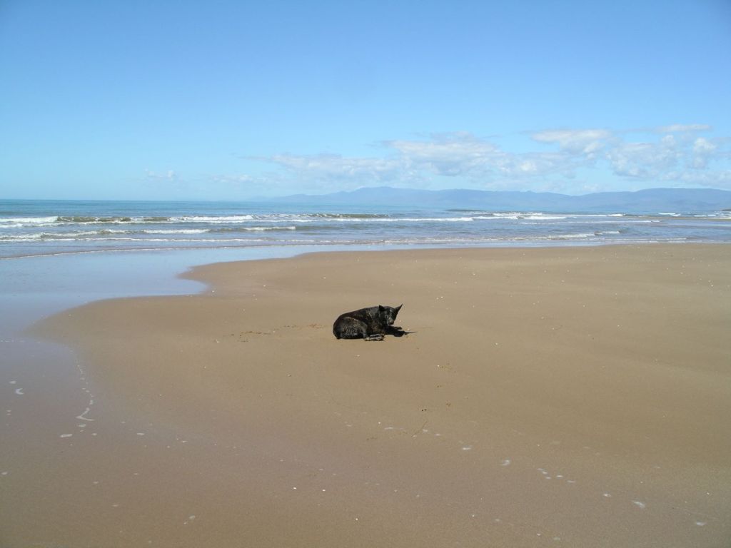 Took Couey for a beach walk. It wasn’t great, because there were more people on the beach than on weekdays – although it was not exactly crowded. Couey was reluctant to go as far as I wanted and eventually I gave up dragging her along on the lead, and turned back. Then, of course, it became her dragging me!