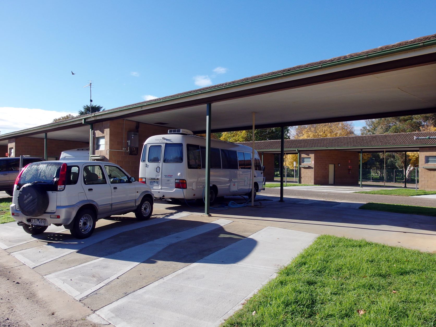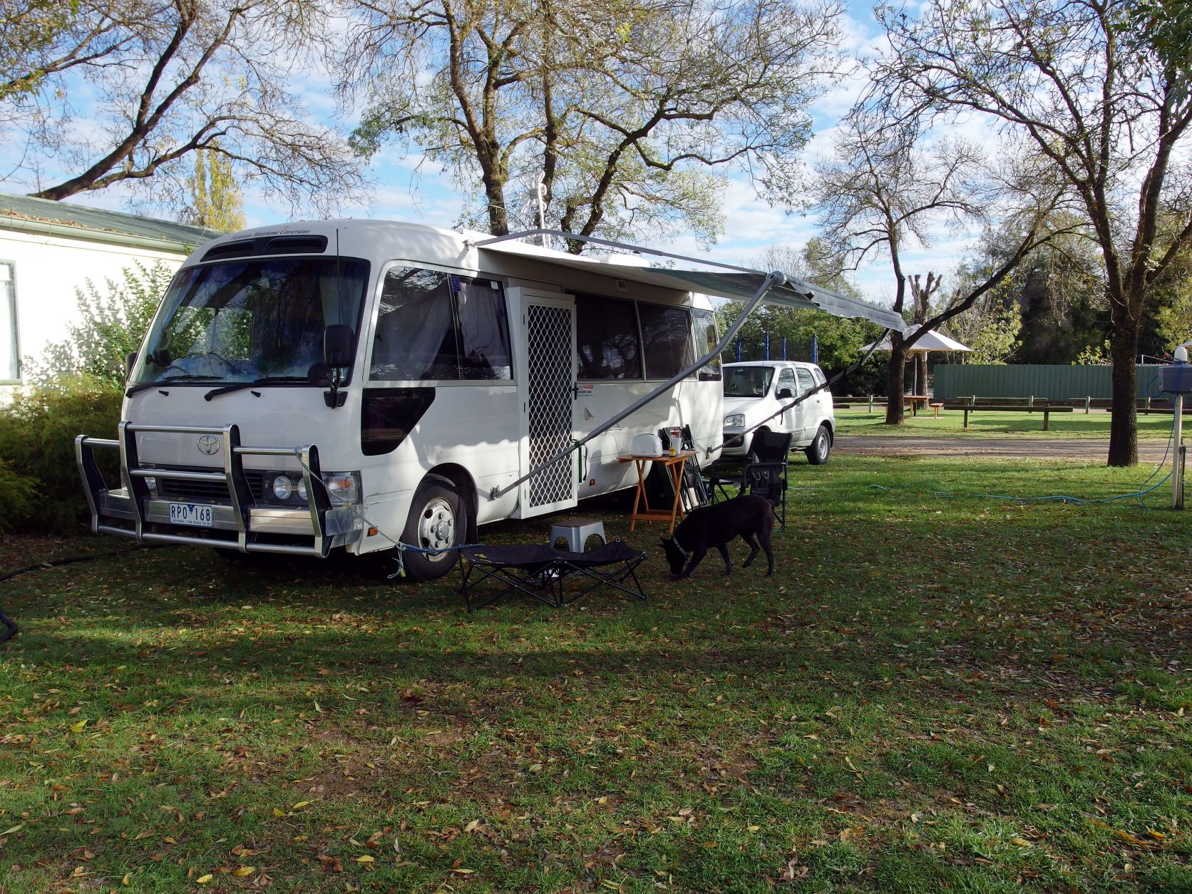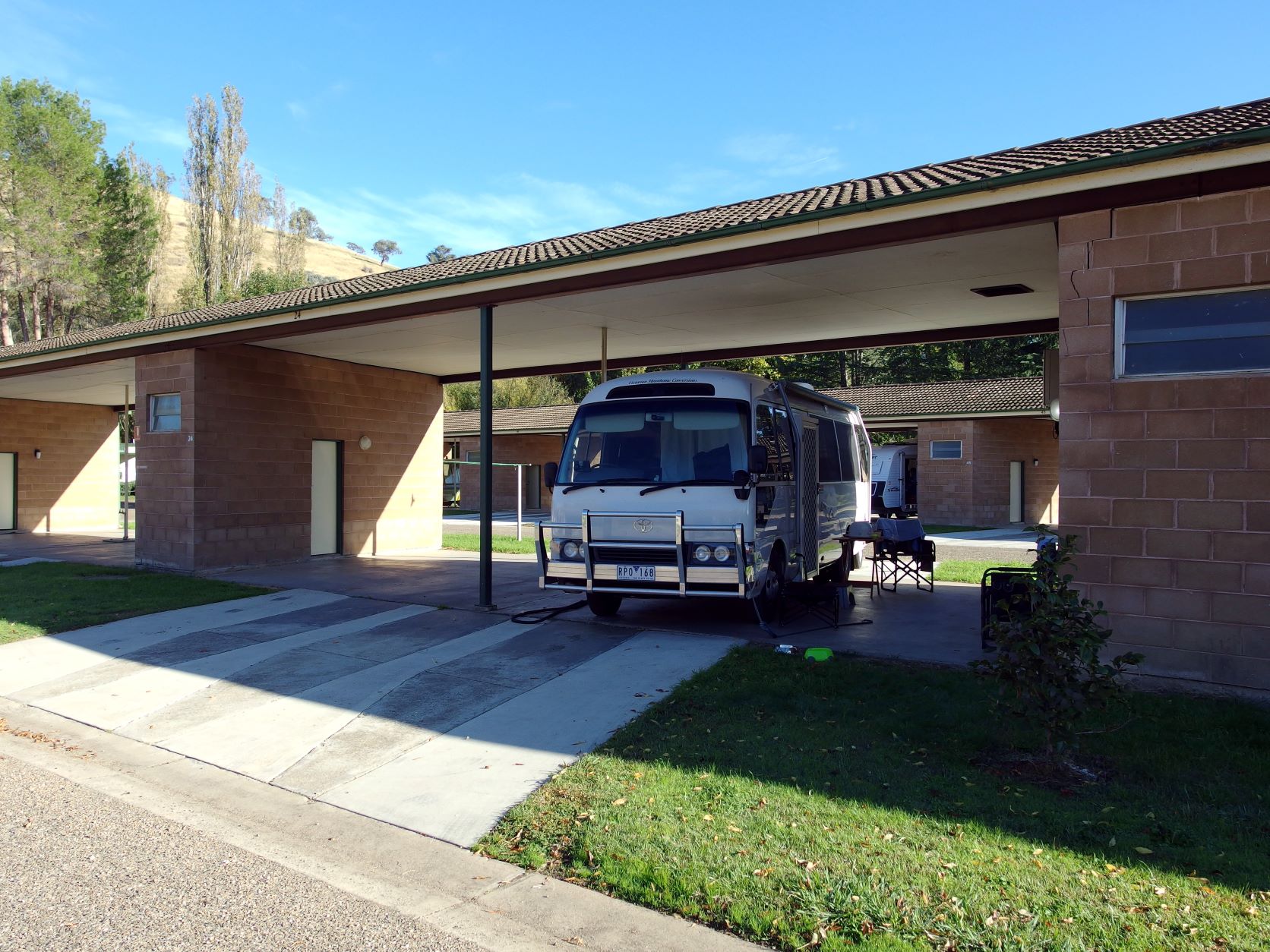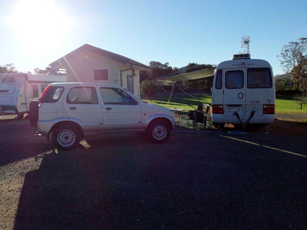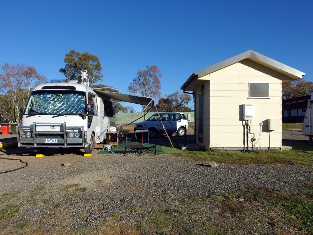 This morning, the antenna man finally turned up. He came into Bus, fiddled about a bit, and got a great picture. I suspected the usually tech-savvy other half may not have had the controls set for digital TV. But no-one said anything, and – on further inspection – the man did find something wrongly wired outside, on the antenna. He rectified this. When the new antenna was installed, in 2013, the work was done by John and a mate and that is when the wrong wiring must have happened. Mind you, it all worked perfectly well through our 2013 trip….Anyway, all fixed, we were told, at a cost of $110, which seemed quite reasonable.