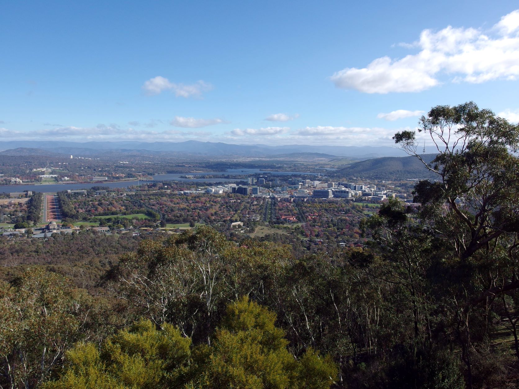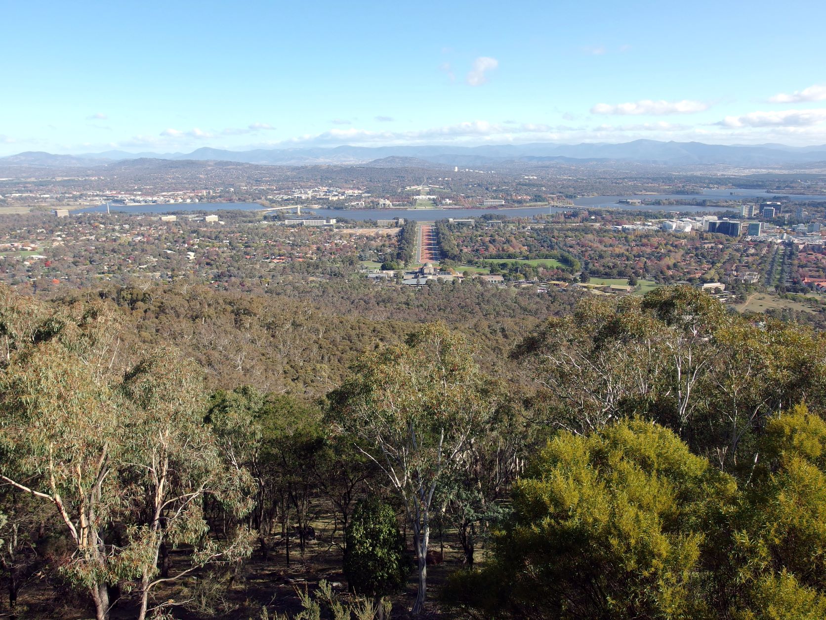 From Mt Ainslie: central Canberra, looking towards Scrivener Dam