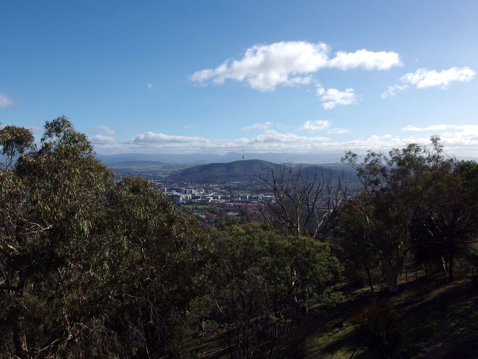 After that we were in the mood for something panoramic. The obvious candidate, the Telstra Tower, is contained in the Black Mountain Nature Reserve, where dogs are not permitted at all. So we did not try to revisit that- had been up there in 1998.