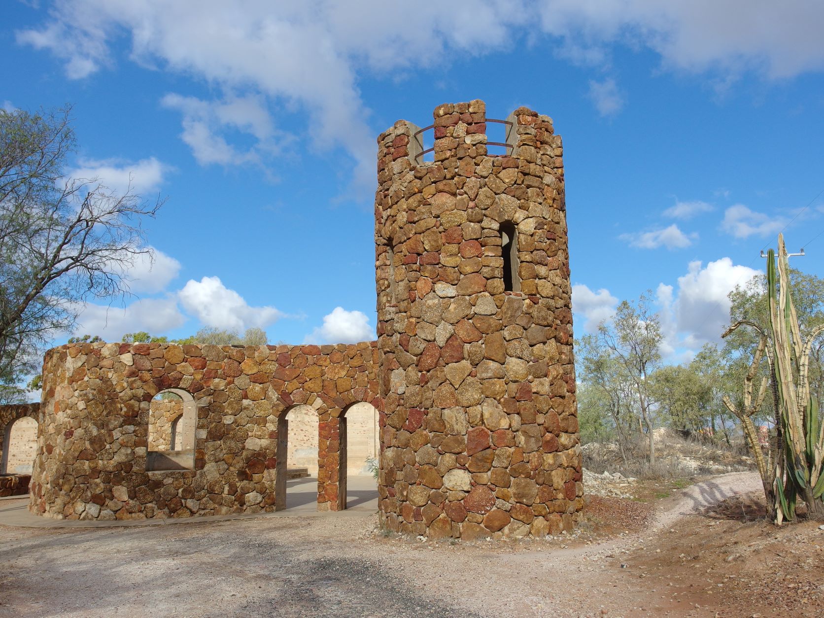 Amigo started building this more than twenty five years ago, perhaps as a change from fairly unproductive opal mining? He used stone from the claim to start building a structure and it just kept going. Eventually, he had to source stone from all over the area.