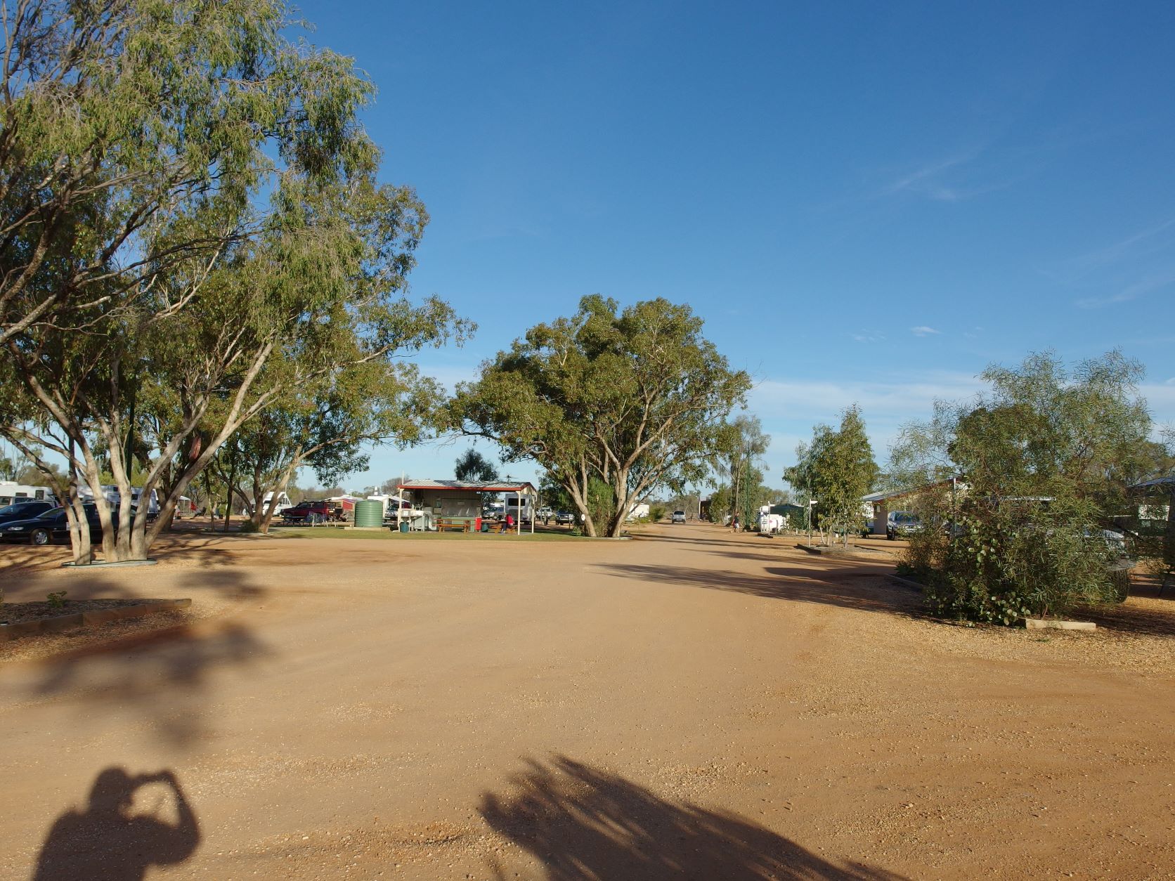 Camp kitchen area with powered sites beyond