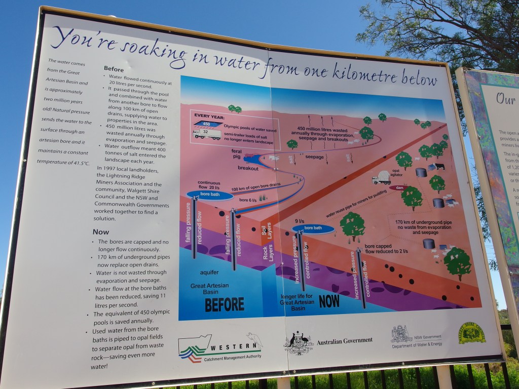 About two hundred metres from the caravan park are the Lightning Ridge Bore Baths.