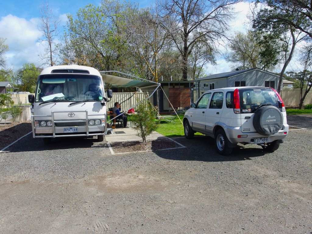 I took a phone call and John was able to pull over to talk. It was to tell him that the sister’s funeral would be on Tuesday – sooner than we’d been previously told. We decided to keep going. Dog and I would stay in Bendigo and John could drive the Terios back to Melbourne for the day. I was pleased that we had set off today and were not now waiting around at home for the event to be over.