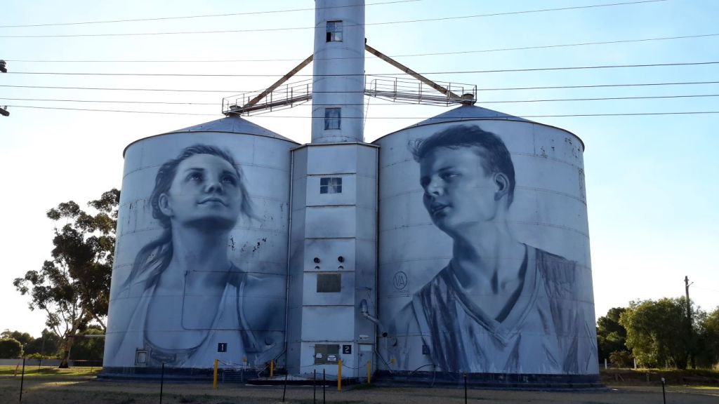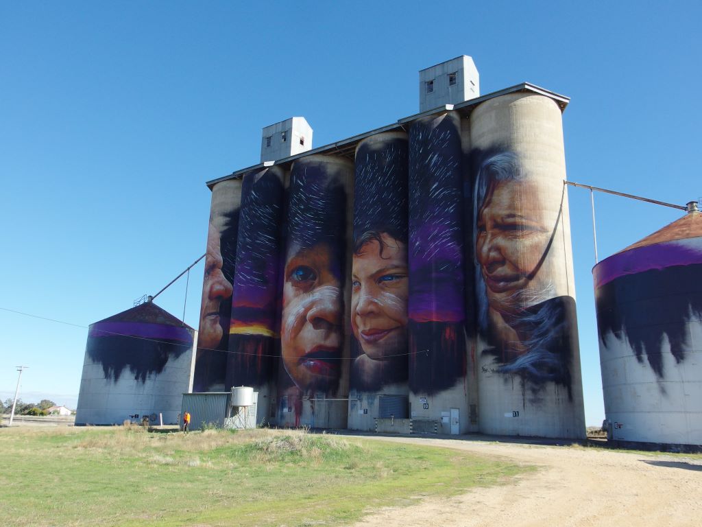 What was now known as the Silo Art Trail had developed over the previous couple of years. Basically, there was a movement to get well-known and talented street artists to paint murals on disused grain silos, depicting something that relates to the local community or area. So there was at this time a sort of outdoor art gallery, in four towns, spread over some 200kms. Two more were planned for later this year. The concept seemed to have caught the imaginations of the travelling public, who were driving in significant numbers to see the silos. A similar thing was happening in SA.