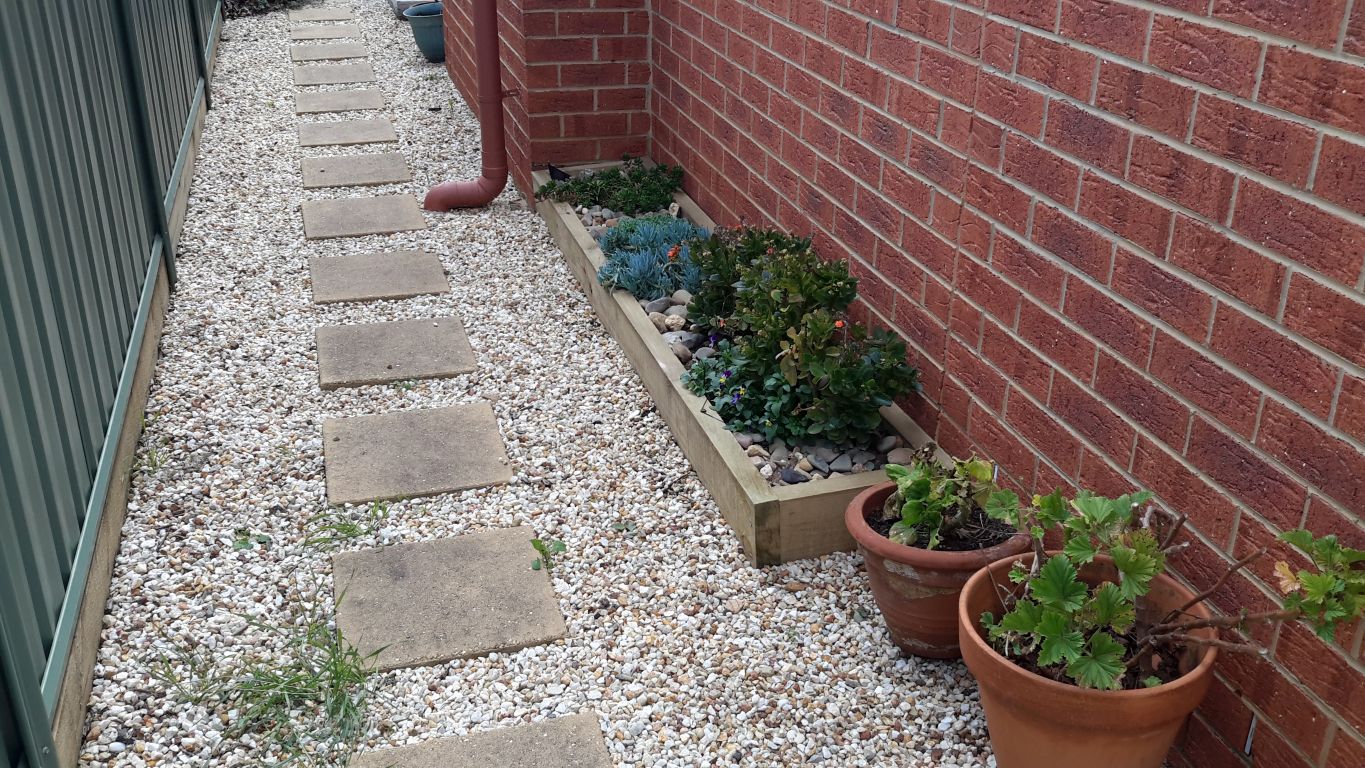 Grandson enjoyed woodwork with John,  helping him build a little garden for my succulents, against a sunny side wall of the house.