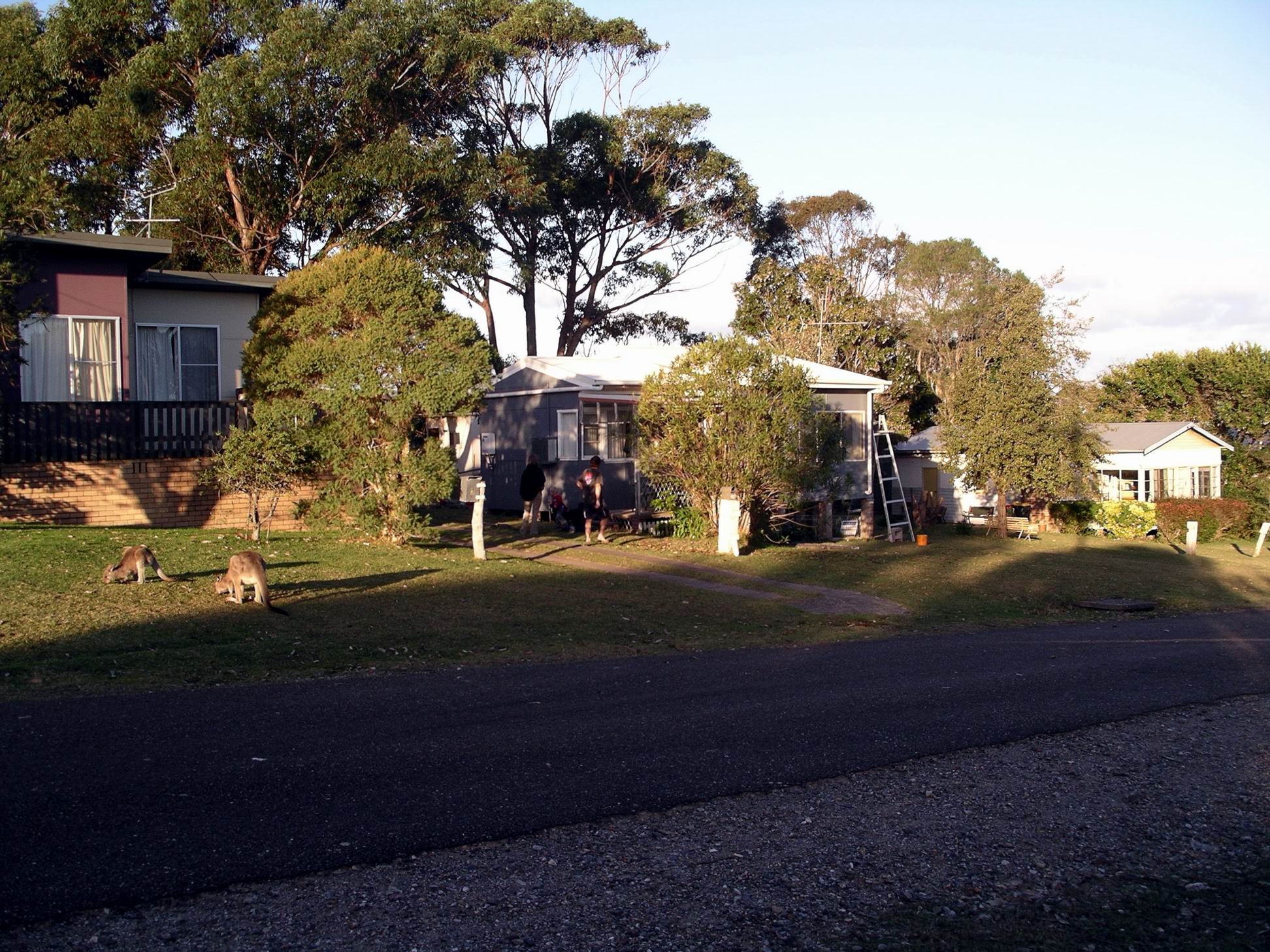 The family’s house was on a short street that ran downhill to the ocean, and only about five houses back from the beach. Across the road was a large caravan park. The place had no front fences, but a large mob of kangaroos roamed freely and kept all the local grass mown!
