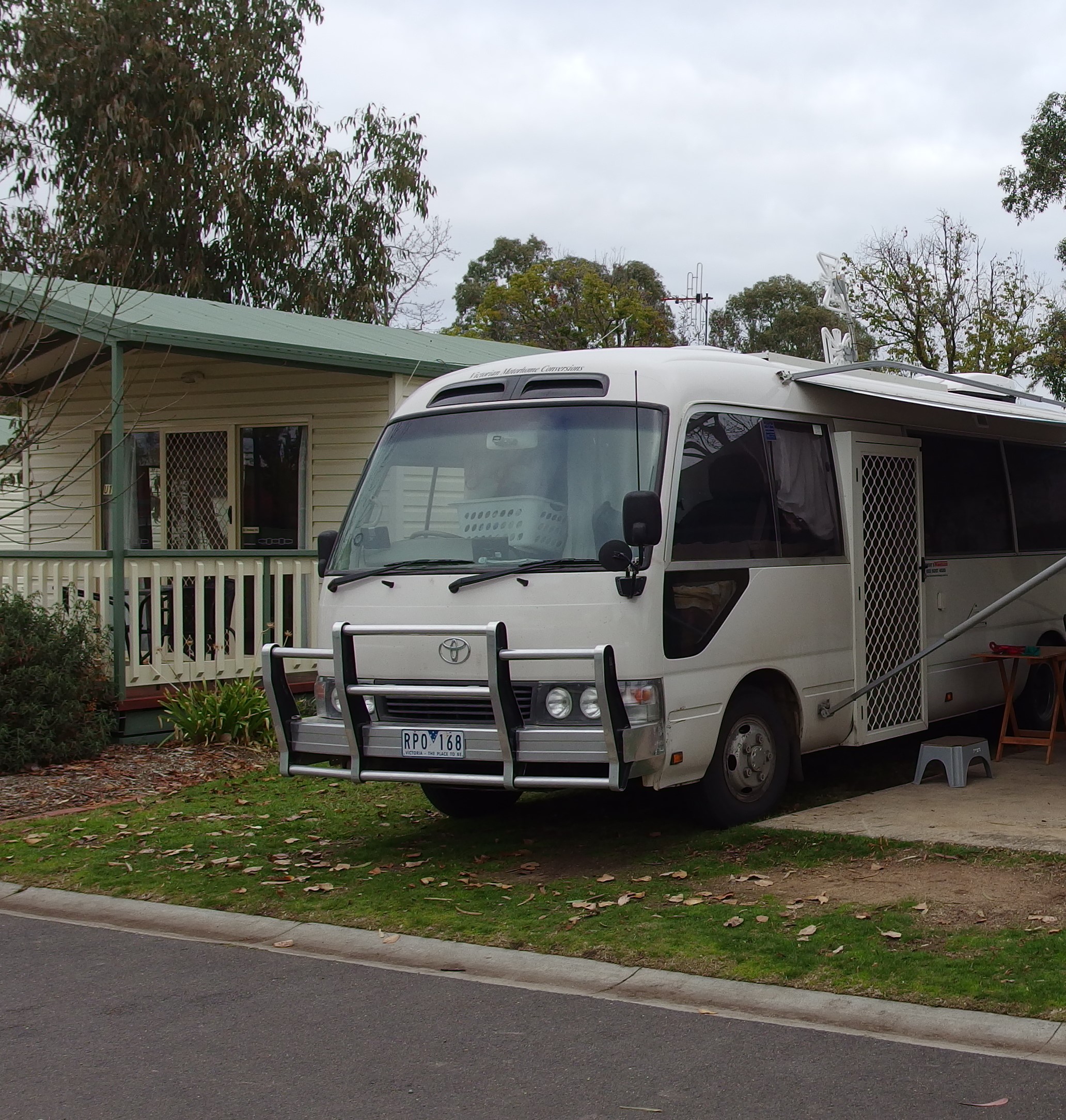 Just for interest I calculated an average for Bus fuel and accommodation per night of this trip. Came to $58.90. Then we spent extra money on fuel for the Terios, and – obviously – food and the like. As a contrast, when we set out on our full-time travel in 1998, we budgeted $400 a week to cover fuel, accommodation and living expenses, and managed comfortably. I think that, now, we’d need just about double that.